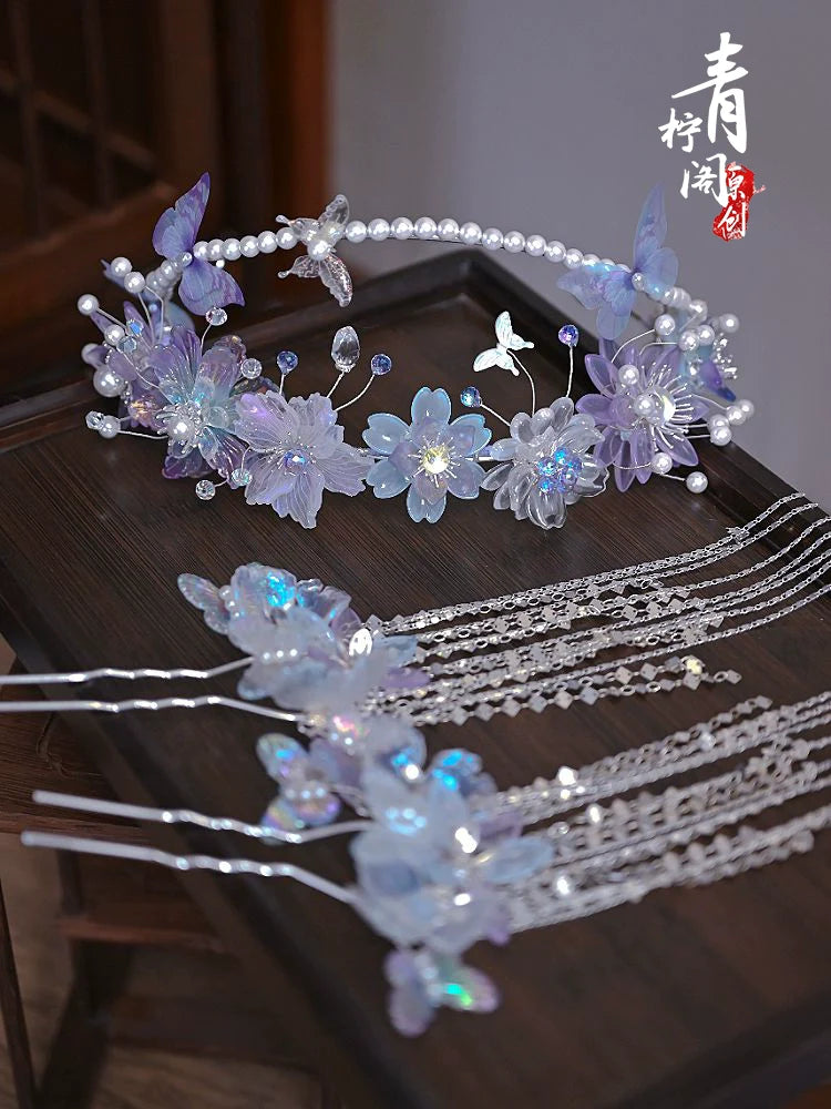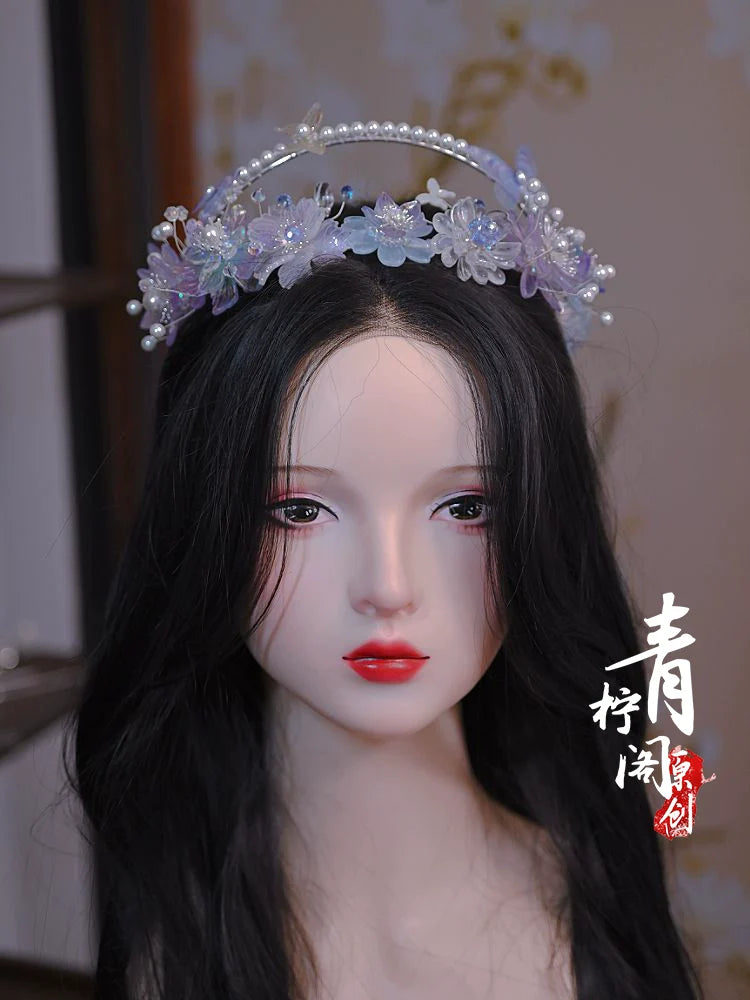 In traditional Hanfu culture, the hairstyle and the accompanying accessories are considered important elements that complete the overall look and reflect the wearer's social status, fashion sense, and personal style.