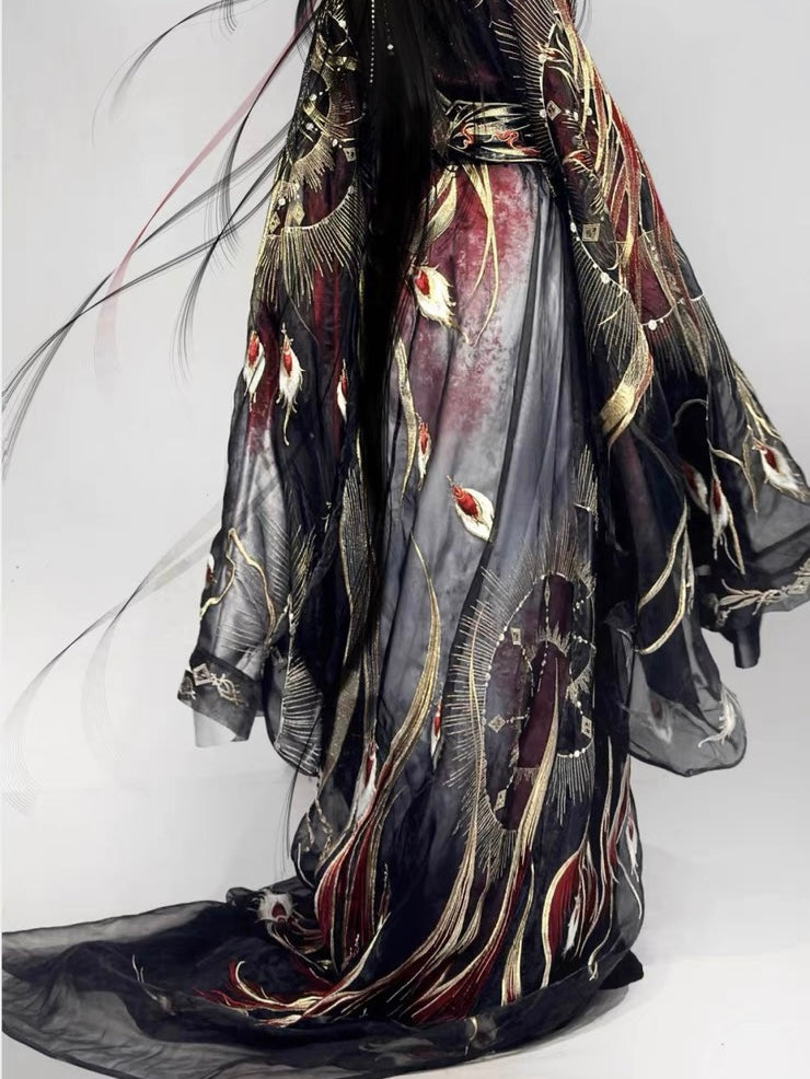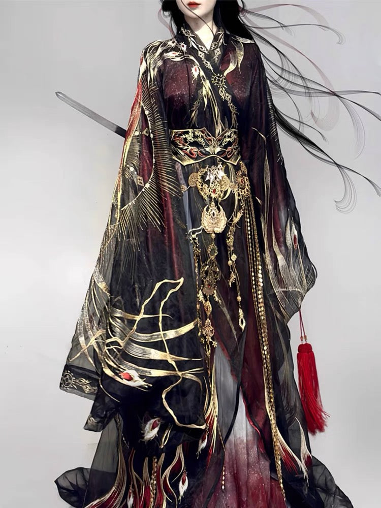 Complete Set: Inner Cross Collar Robe, Outer Cross Collar Robe, Wrapped Skirt, Belt, Accessory