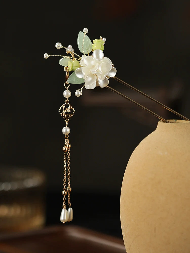 Hanfu hair accessories can vary widely in style, material, and design, but they all serve the purpose of enhancing the wearer's appearance and adding an extra touch of elegance to their hair. Some notable hair accessories commonly associated with Hanfu are hairpins (发簪, fāzān), hair combs (发篦, fābì), tassels (流苏, liúsū), hair ornaments (发髻, fājì), hairbands and headpieces (发饰, fāshì).
