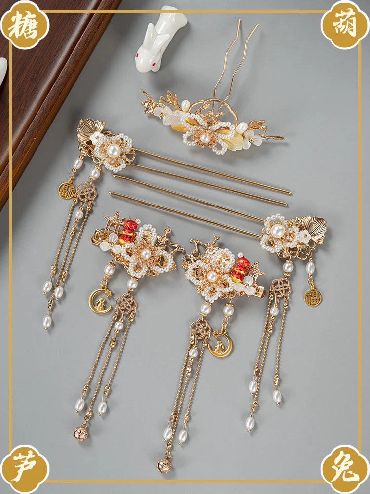 Traditional Chinese-style hair accessories, earrings, necklaces, and bags, perfect for pairing with hanfu, cheongsam, qipao, or even modern dresses.