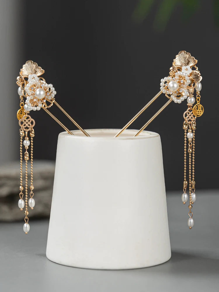 Hanfu hair accessories can vary widely in style, material, and design, but they all serve the purpose of enhancing the wearer's appearance and adding an extra touch of elegance to their hair. Some notable hair accessories commonly associated with Hanfu are hairpins (发簪, fāzān), hair combs (发篦, fābì), tassels (流苏, liúsū), hair ornaments (发髻, fājì), hairbands and headpieces (发饰, fāshì).