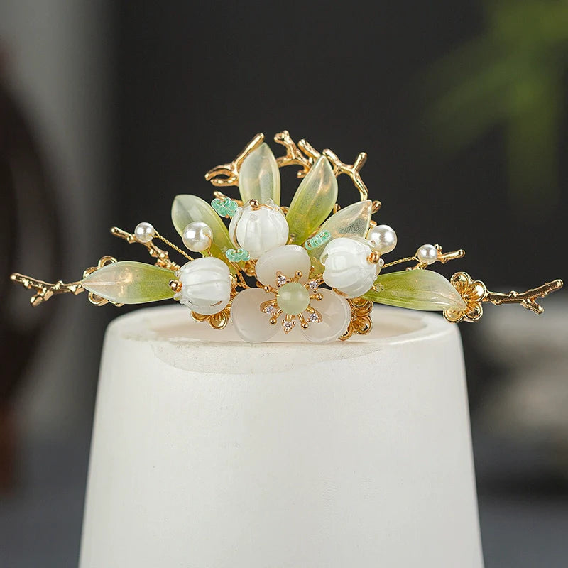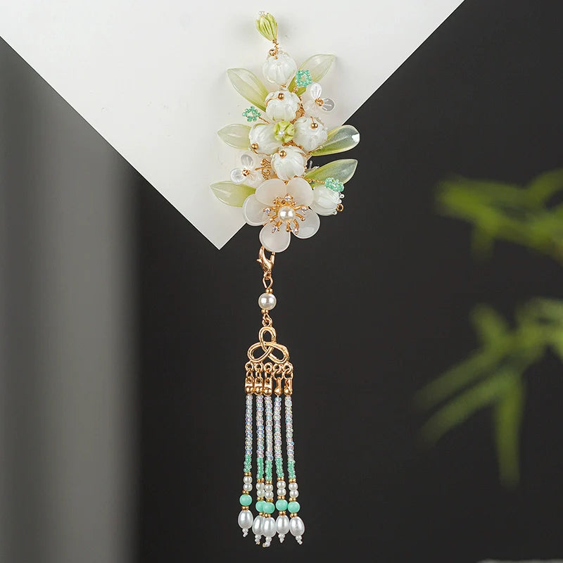Hanfu hair accessories can vary widely in style, material, and design, but they all serve the purpose of enhancing the wearer's appearance and adding an extra touch of elegance to their hair. Some notable hair accessories commonly associated with Hanfu are hairpins (发簪, fāzān), hair combs (发篦, fābì), tassels (流苏, liúsū), hair ornaments (发髻, fājì), hairbands and headpieces (发饰, fāshì).