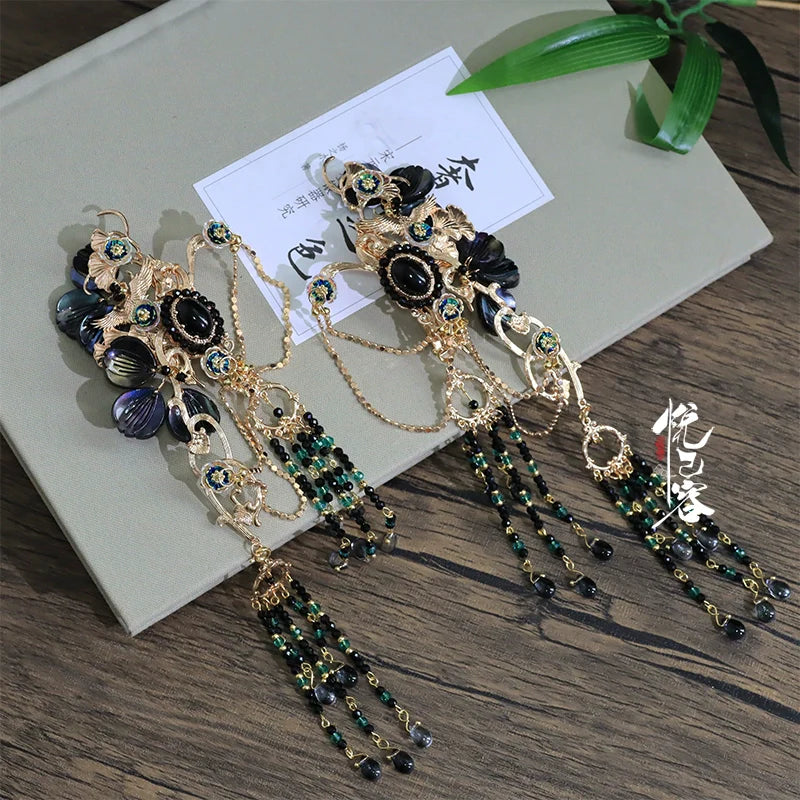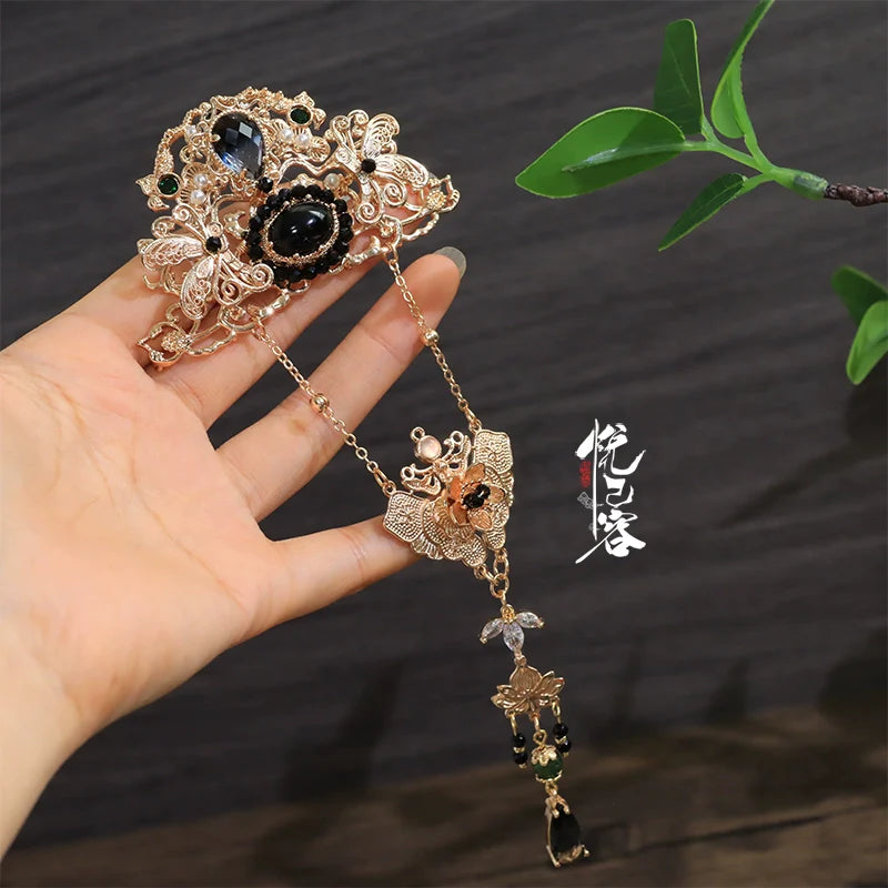 Hanfu hair accessories can vary widely in style, material, and design, but they all serve the purpose of enhancing the wearer's appearance and adding an extra touch of elegance to their hair. Some notable hair accessories commonly associated with Hanfu are hairpins (发簪, fāzān), hair combs (发篦, fābì), tassels (流苏, liúsū), hair ornaments (发髻, fājì), hairbands and headpieces (发饰, fāshì).