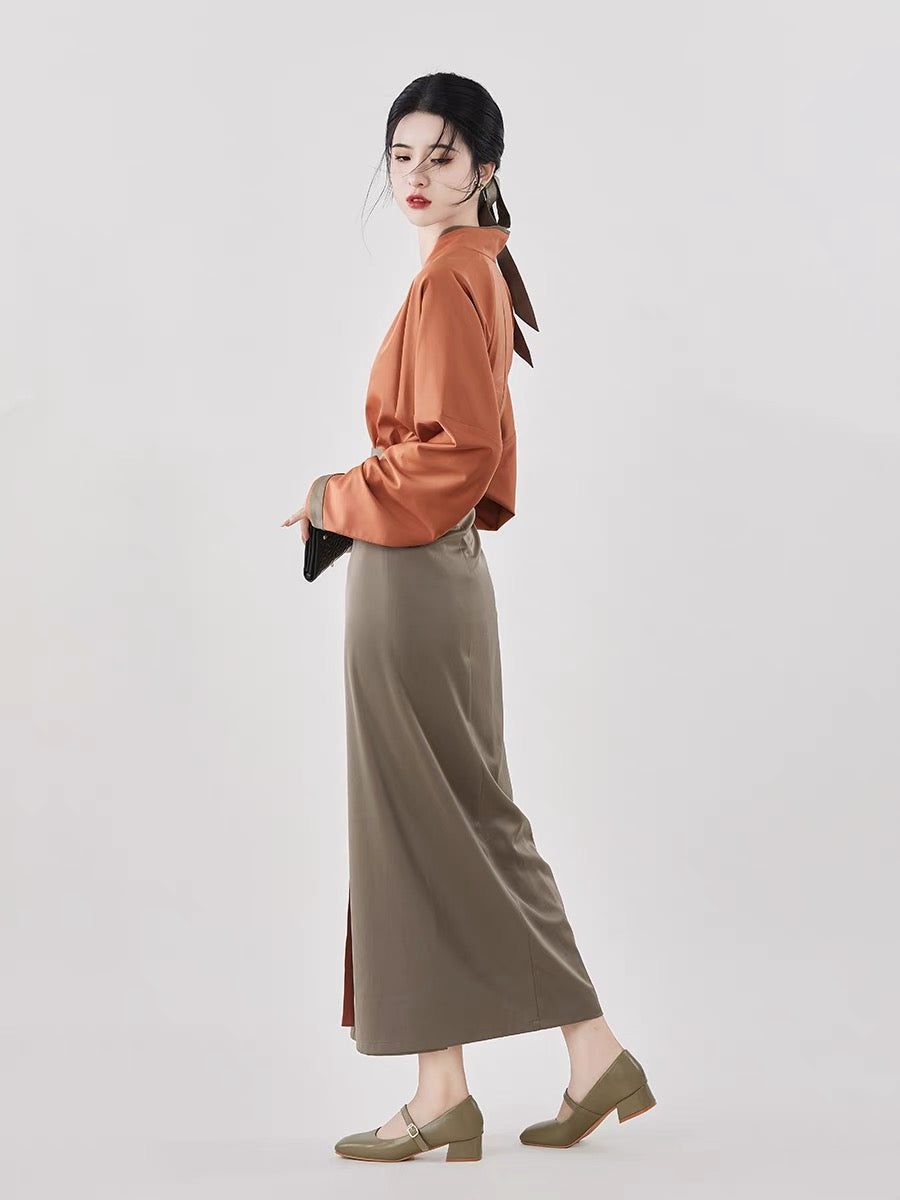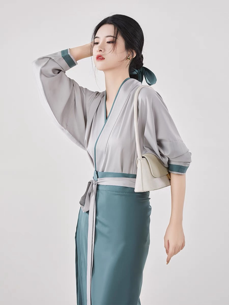 Complete Set: Cross Collar Top, Wrapped Skirt