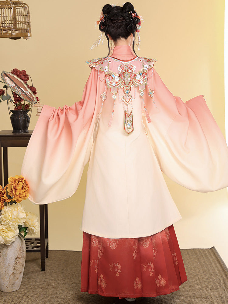 Shop Ming Dynasty women’s fashion, featuring structured Mamian skirts, embroidered cloud shoulders, and flowing robes. These historical Chinese garments are perfect for cultural events, festivals, performances, and even wedding or graduation ceremonies.