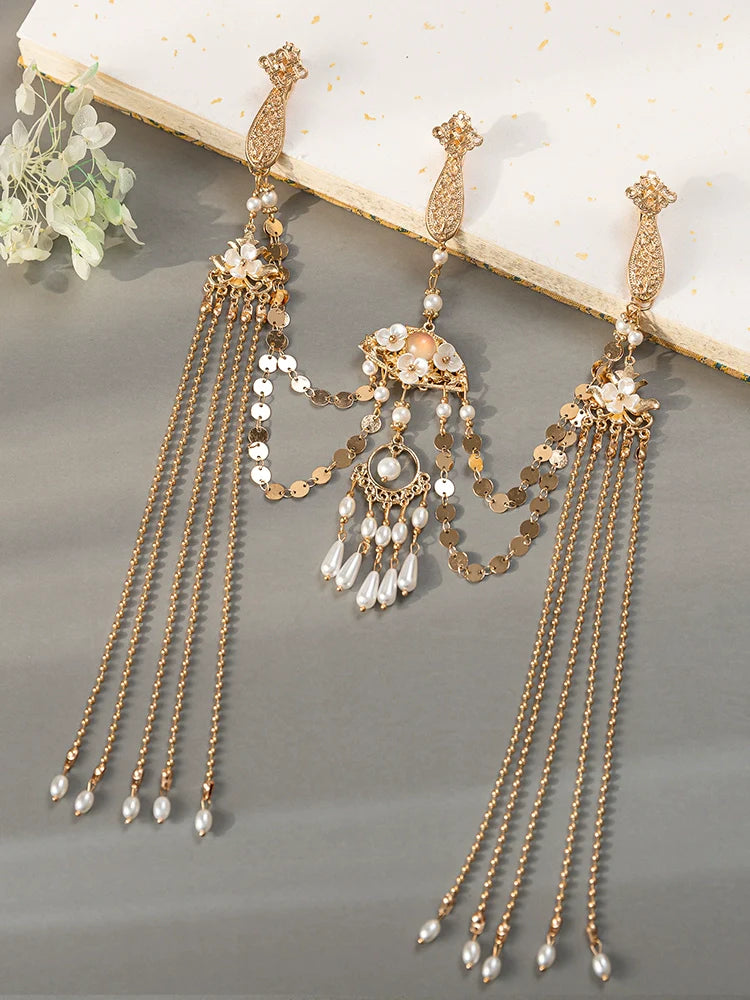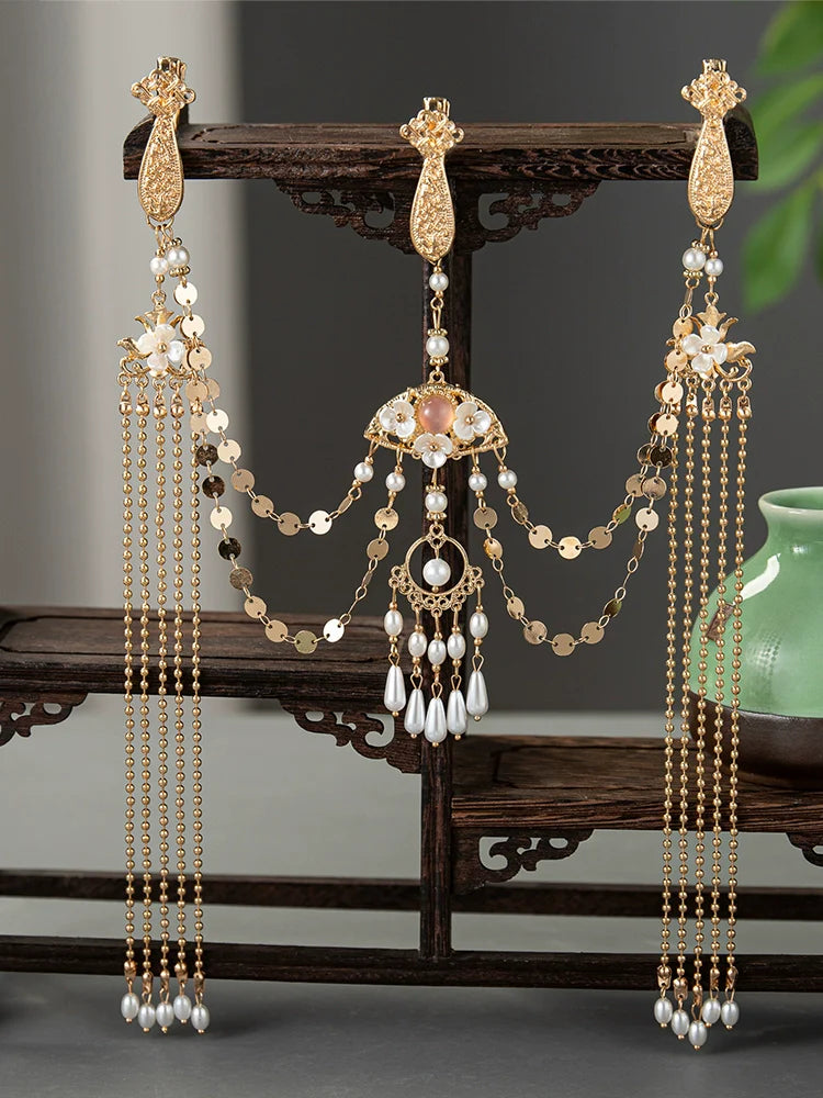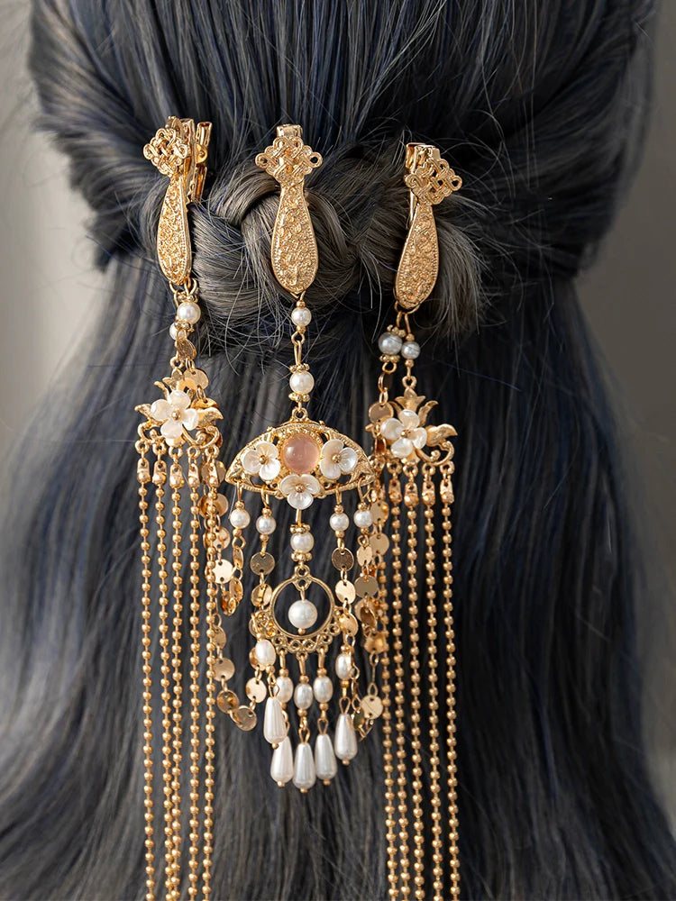 Hanfu hair accessories can vary widely in style, material, and design, but they all serve the purpose of enhancing the wearer's appearance and adding an extra touch of elegance to their hair. Some notable hair accessories commonly associated with Hanfu are hairpins (发簪, fāzān), hair combs (发篦, fābì), tassels (流苏, liúsū), hair ornaments (发髻, fājì), hairbands and headpieces (发饰, fāshì).