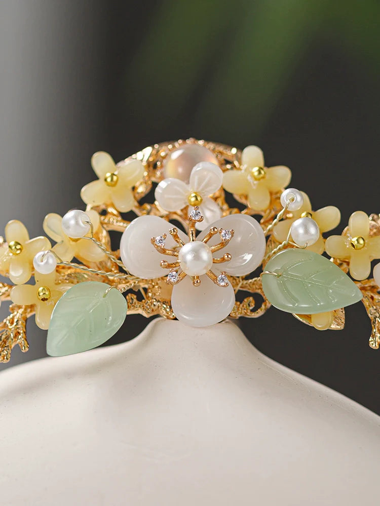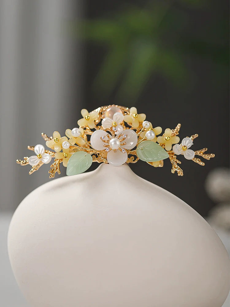 Hanfu hair accessories can vary widely in style, material, and design, but they all serve the purpose of enhancing the wearer's appearance and adding an extra touch of elegance to their hair. Some notable hair accessories commonly associated with Hanfu are hairpins (发簪, fāzān), hair combs (发篦, fābì), tassels (流苏, liúsū), hair ornaments (发髻, fājì), hairbands and headpieces (发饰, fāshì).
