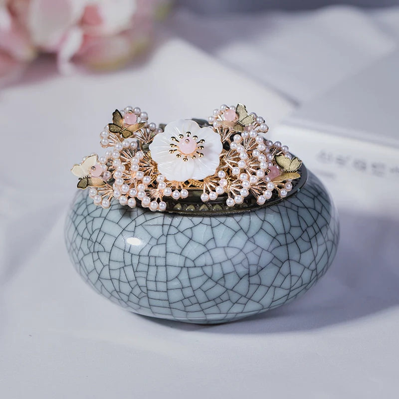 Hanfu hair accessories can vary widely in style, material, and design, but they all serve the purpose of enhancing the wearer's appearance and adding an extra touch of elegance to their hair. Some notable hair accessories commonly associated with Hanfu are hairpins (发簪, fāzān), hair combs (发篦, fābì), tassels (流苏, liúsū), hair ornaments (发髻, fājì), hairbands and headpieces (发饰, fāshì).