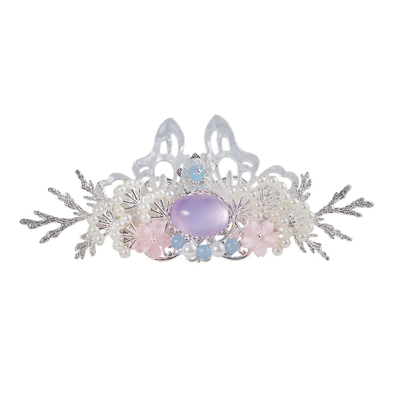 Hanfu hair accessories can vary widely in style, material, and design, but they all serve the purpose of enhancing the wearer's appearance and adding an extra touch of elegance to their hair. Some notable hair accessories commonly associated with Hanfu are hairpins (发簪, fāzān), hair combs (发篦, fābì), tassels (流苏, liúsū), hair ornaments (发髻, fājì), hairbands and headpieces (发饰, fāshì).