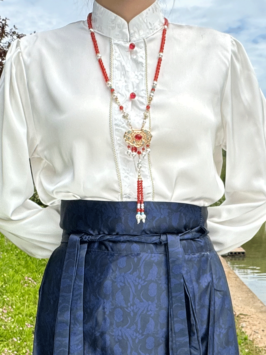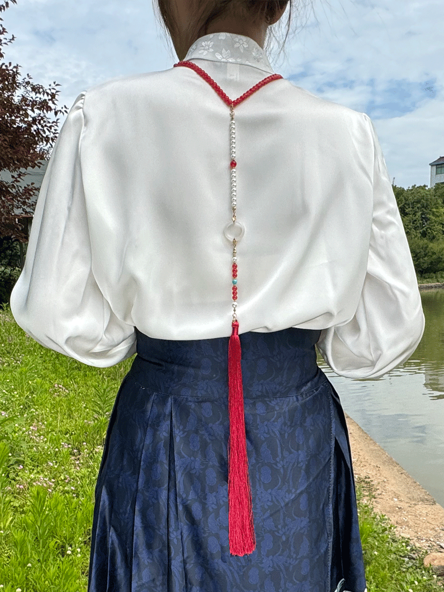 To maintain its shine, store the necklace, or yingluo in a sealed bag when not in use. Do not wear it in the shower or expose it to water.