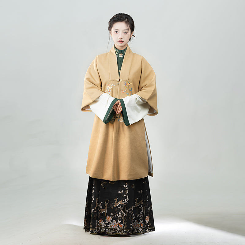 Shop Ming Dynasty women’s fashion, featuring structured Mamian skirts, embroidered cloud shoulders, and flowing robes. These historical Chinese garments are perfect for cultural events, festivals, performances, and even wedding or graduation ceremonies.