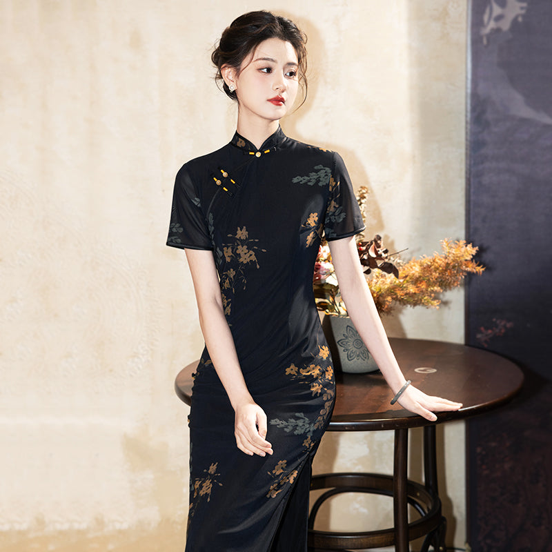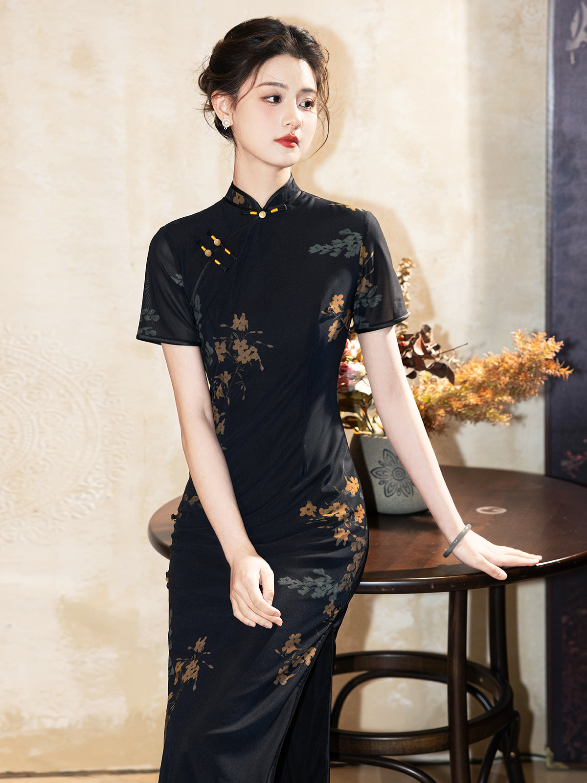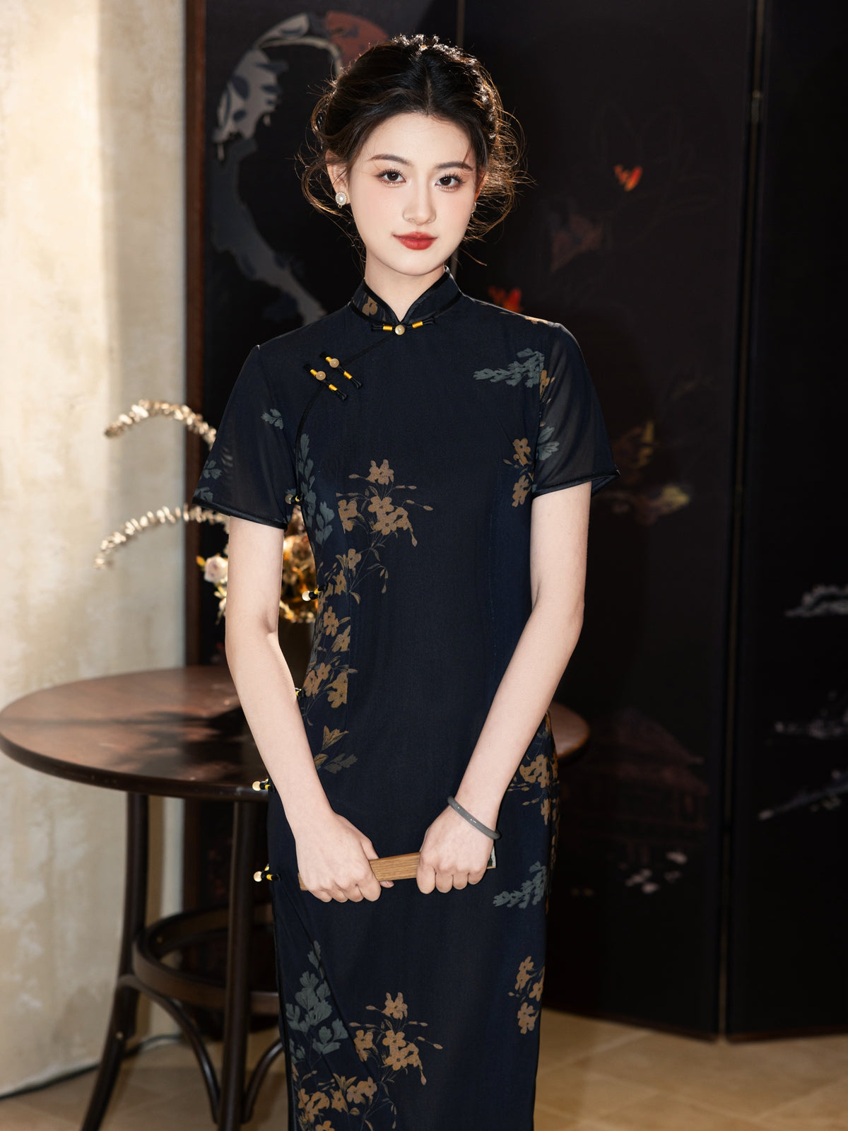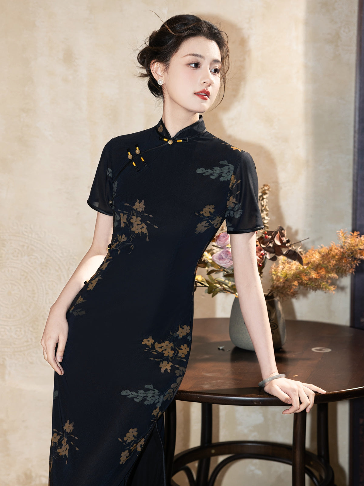 Infatuated 迷恋 - Short Sleeve Retro Long Cheongsam