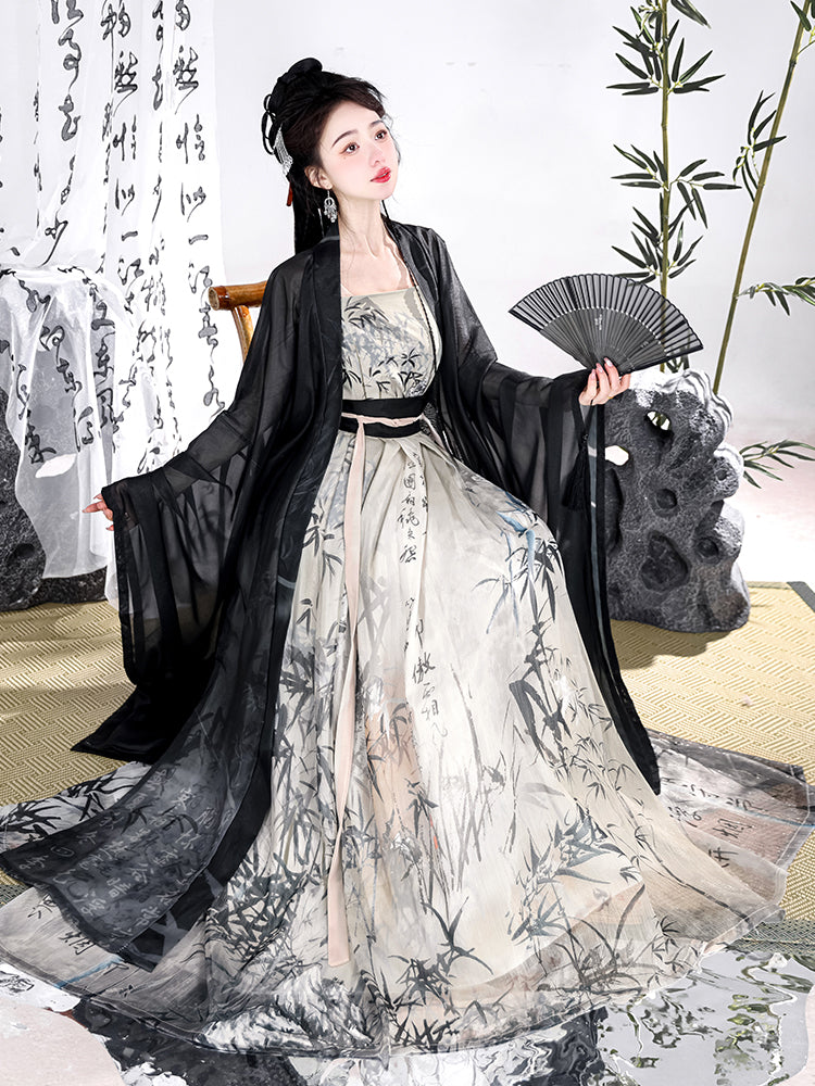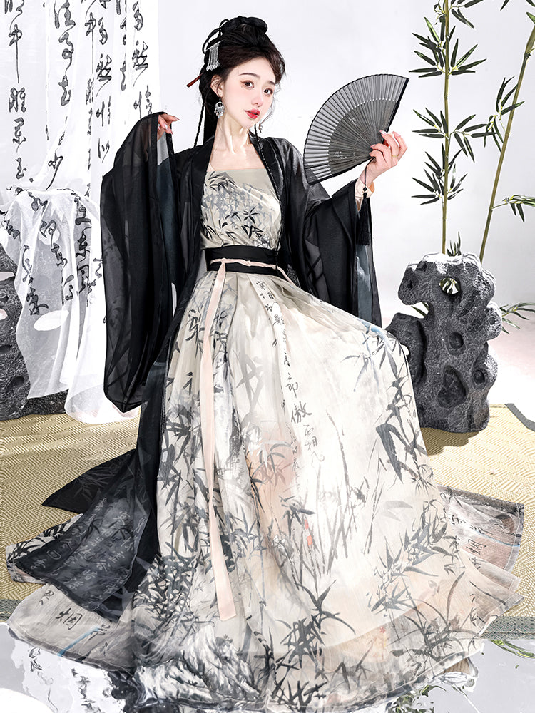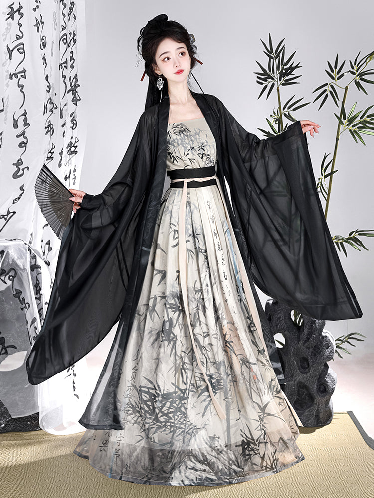 Ink Bamboo 墨竹 - Song Dynasty Style Qiyao Ruqun Hanfu