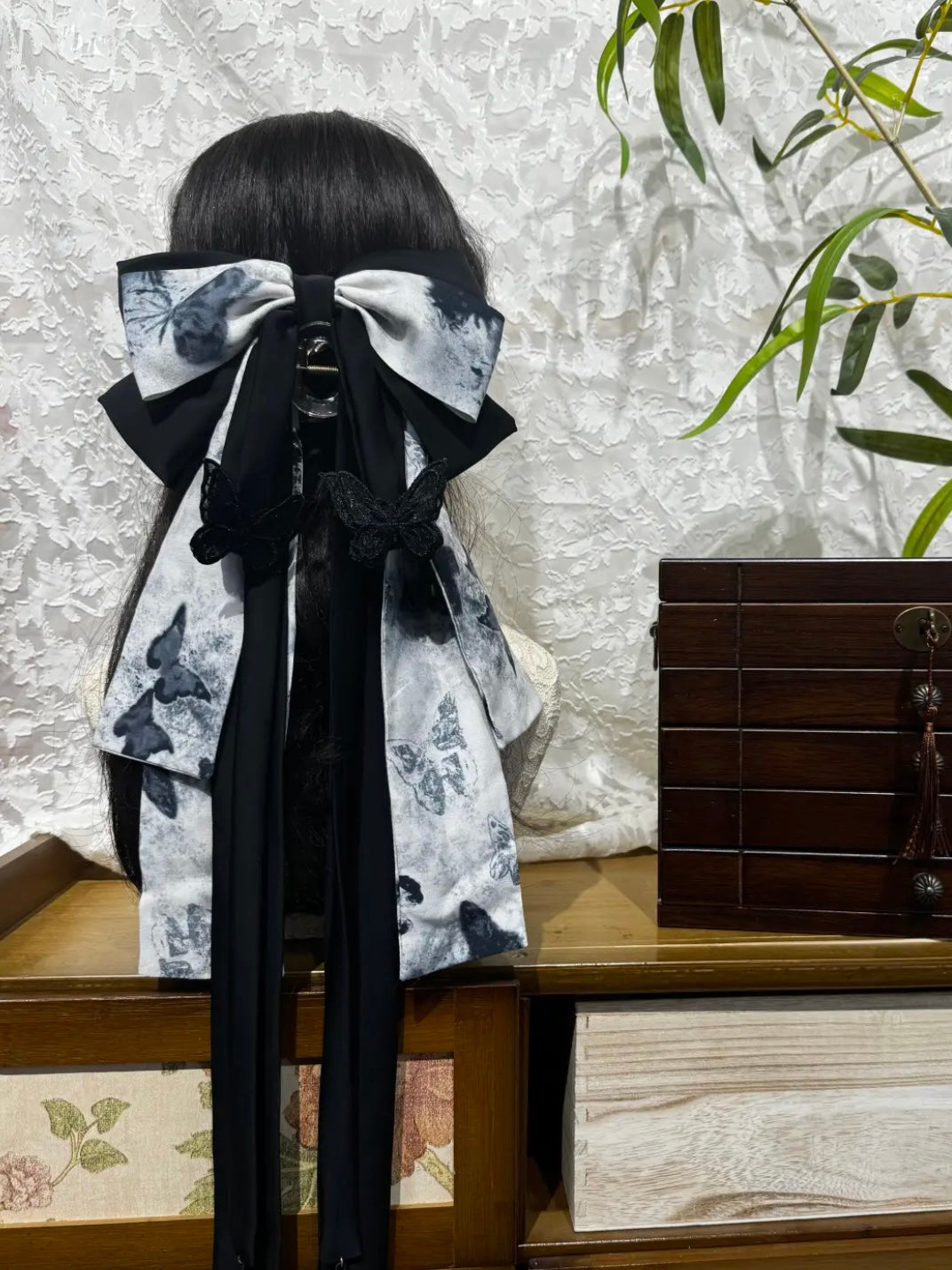 Large Oriental Hair Bows: Calligraphy Butterflies