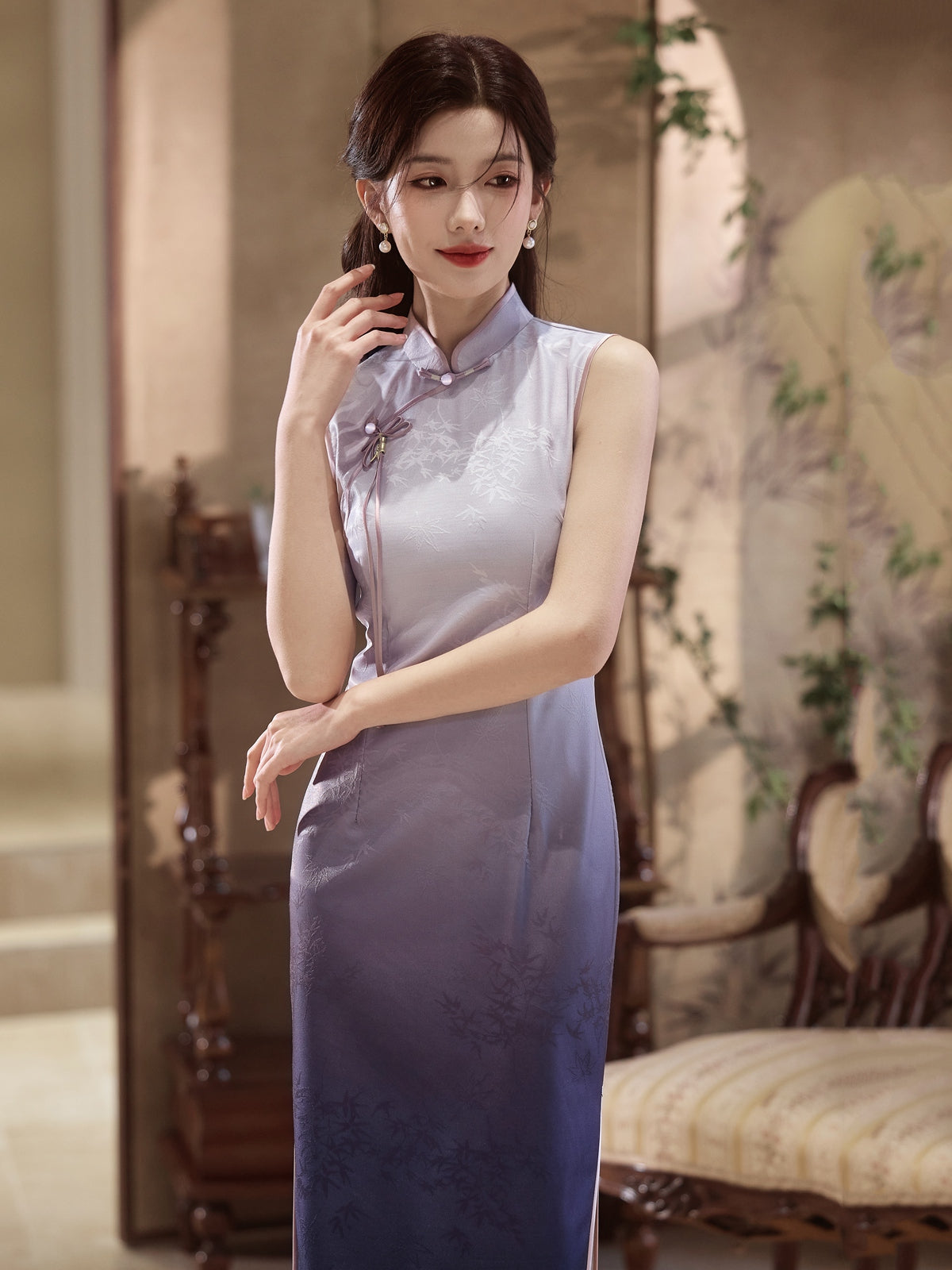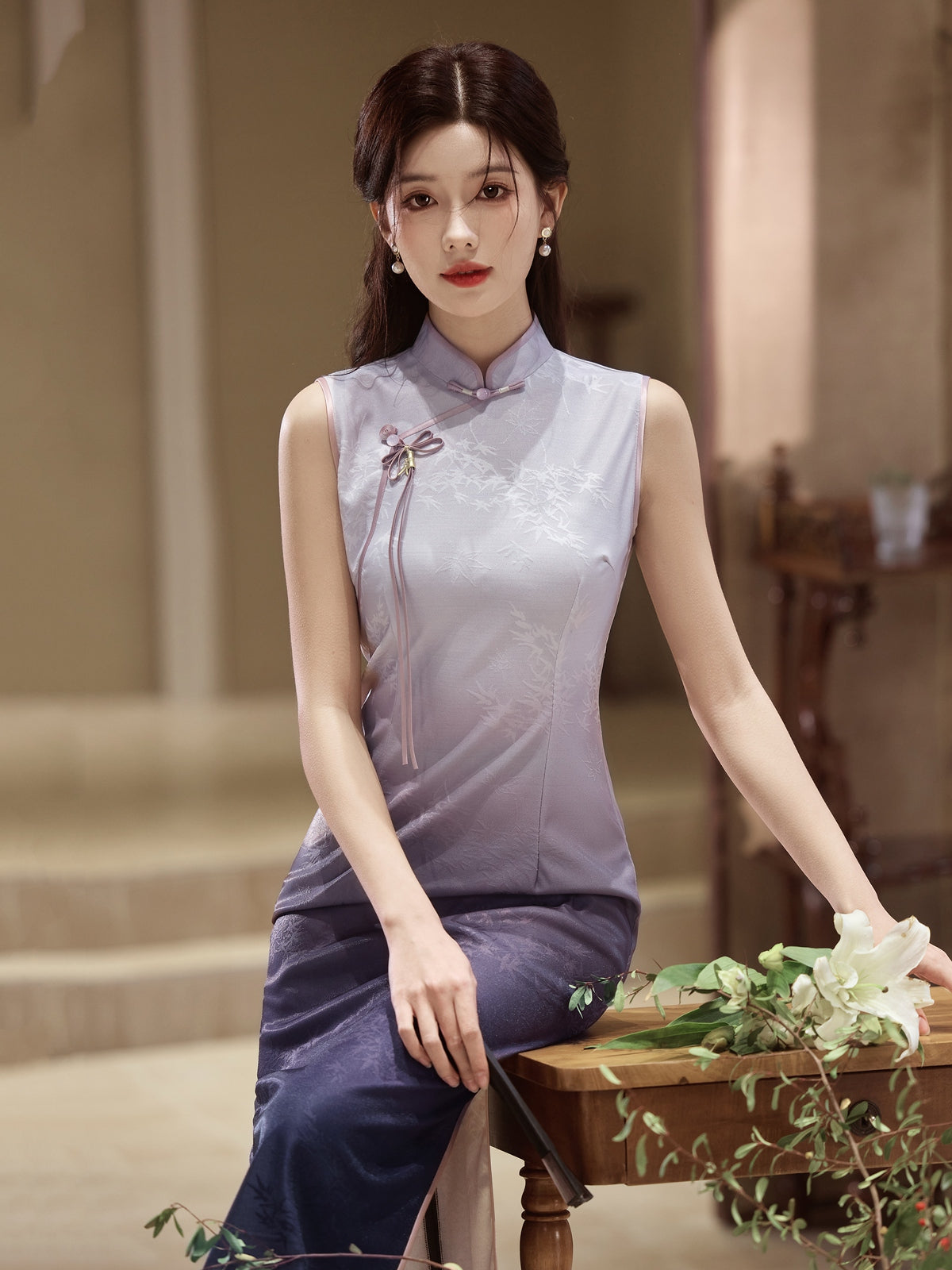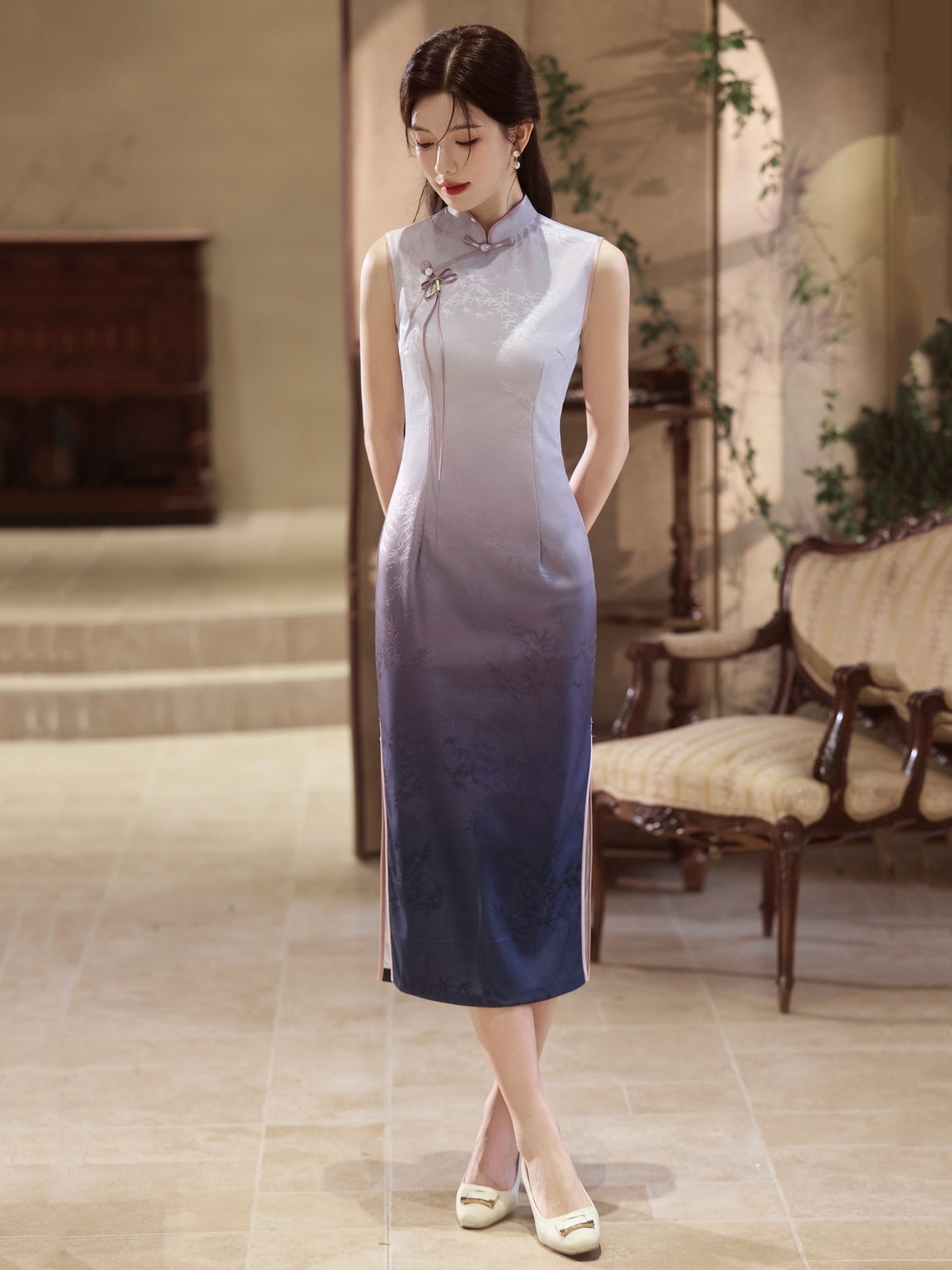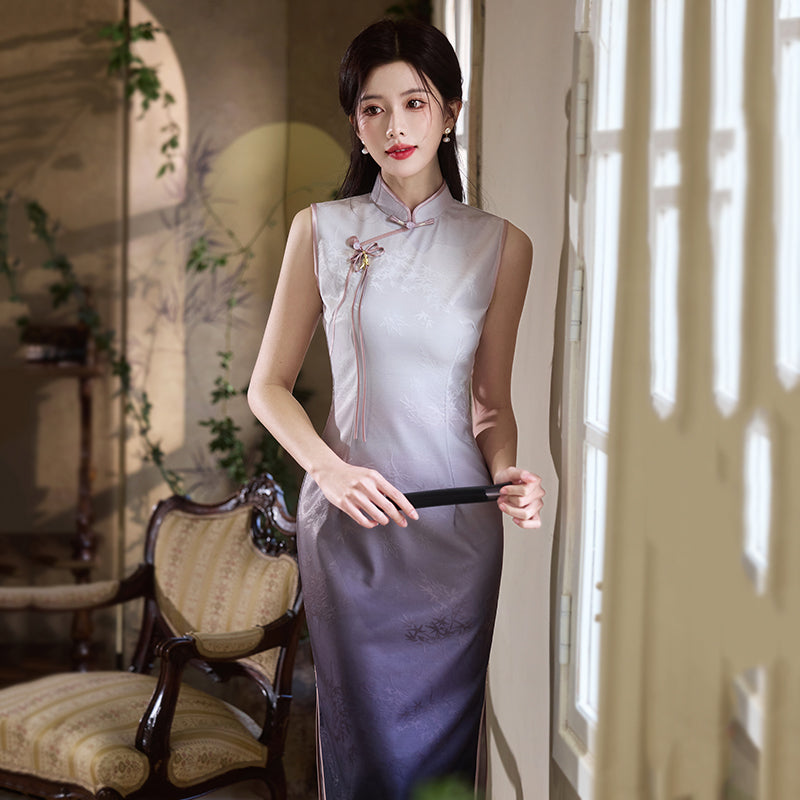 Lilac Mint - Sleeveless Purple Midi Cheongsam