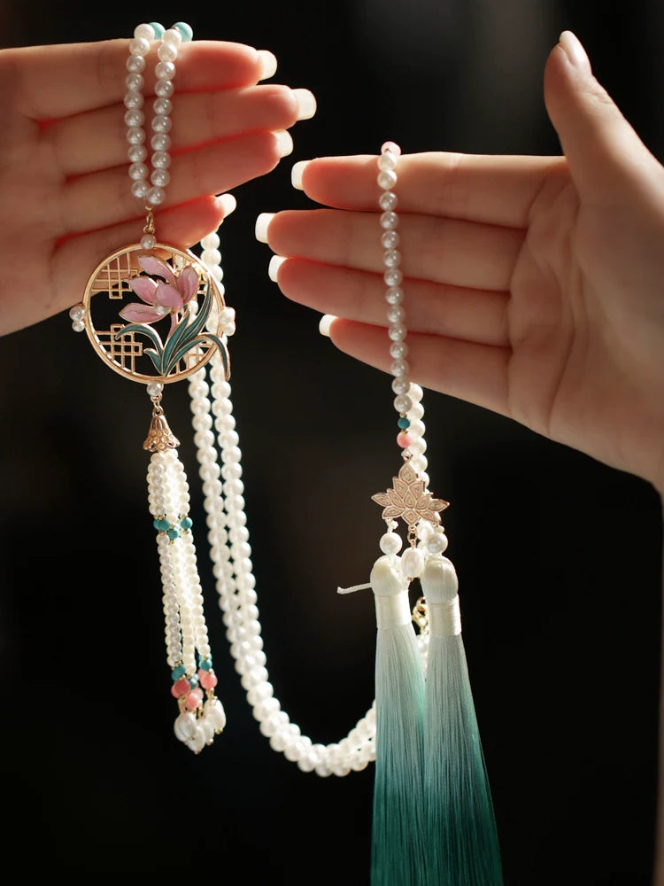 Traditional and modern Chinese-style accessories and costume jewelry, including necklaces, yingluo, and bracelets, perfect for pairing with Hanfu, Cheongsam, and Qipao.