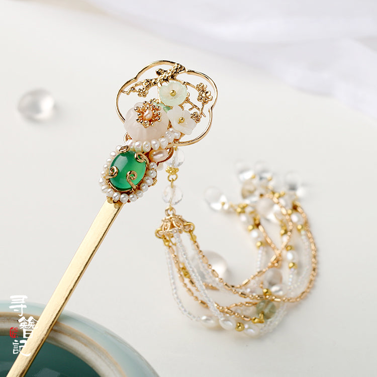 Hanfu hair accessories can vary widely in style, material, and design, but they all serve the purpose of enhancing the wearer's appearance and adding an extra touch of elegance to their hair. Some notable hair accessories commonly associated with Hanfu are hairpins (发簪, fāzān), hair combs (发篦, fābì), tassels (流苏, liúsū), hair ornaments (发髻, fājì), hairbands and headpieces (发饰, fāshì).