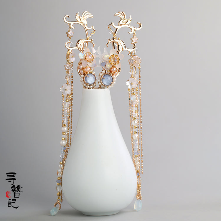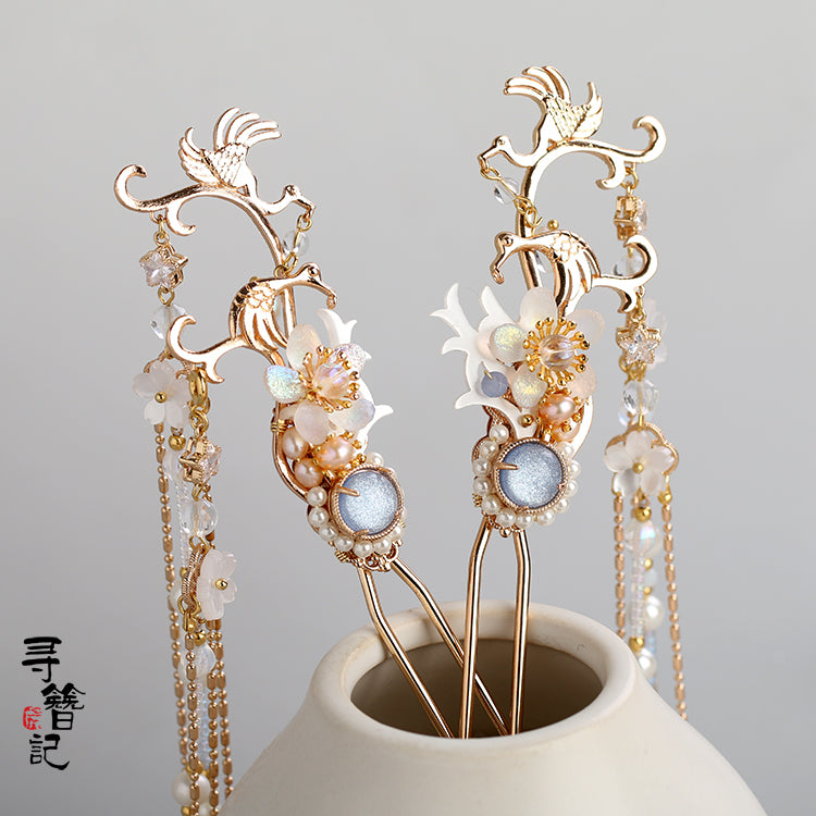 Hanfu hair accessories can vary widely in style, material, and design, but they all serve the purpose of enhancing the wearer's appearance and adding an extra touch of elegance to their hair. Some notable hair accessories commonly associated with Hanfu are hairpins (发簪, fāzān), hair combs (发篦, fābì), tassels (流苏, liúsū), hair ornaments (发髻, fājì), hairbands and headpieces (发饰, fāshì).