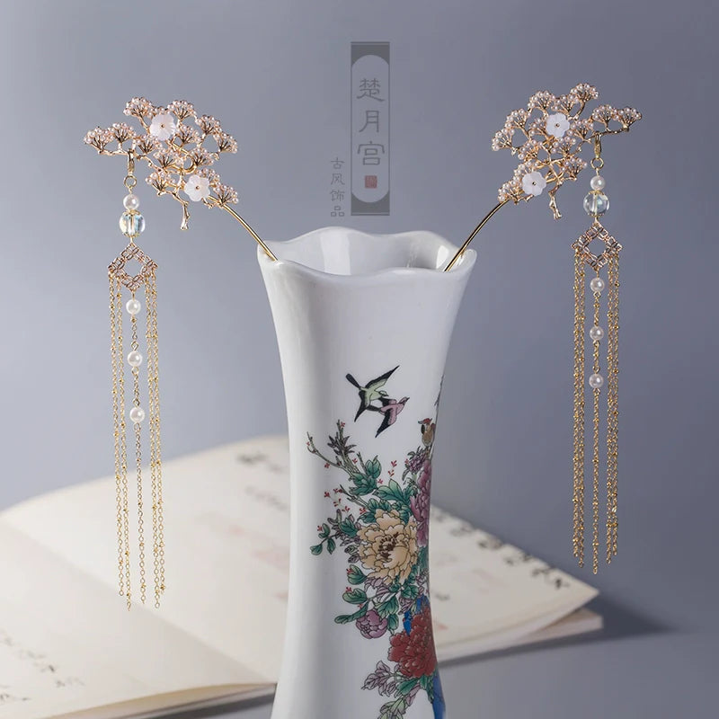 Hanfu hair accessories can vary widely in style, material, and design, but they all serve the purpose of enhancing the wearer's appearance and adding an extra touch of elegance to their hair. Some notable hair accessories commonly associated with Hanfu are hairpins (发簪, fāzān), hair combs (发篦, fābì), tassels (流苏, liúsū), hair ornaments (发髻, fājì), hairbands and headpieces (发饰, fāshì).