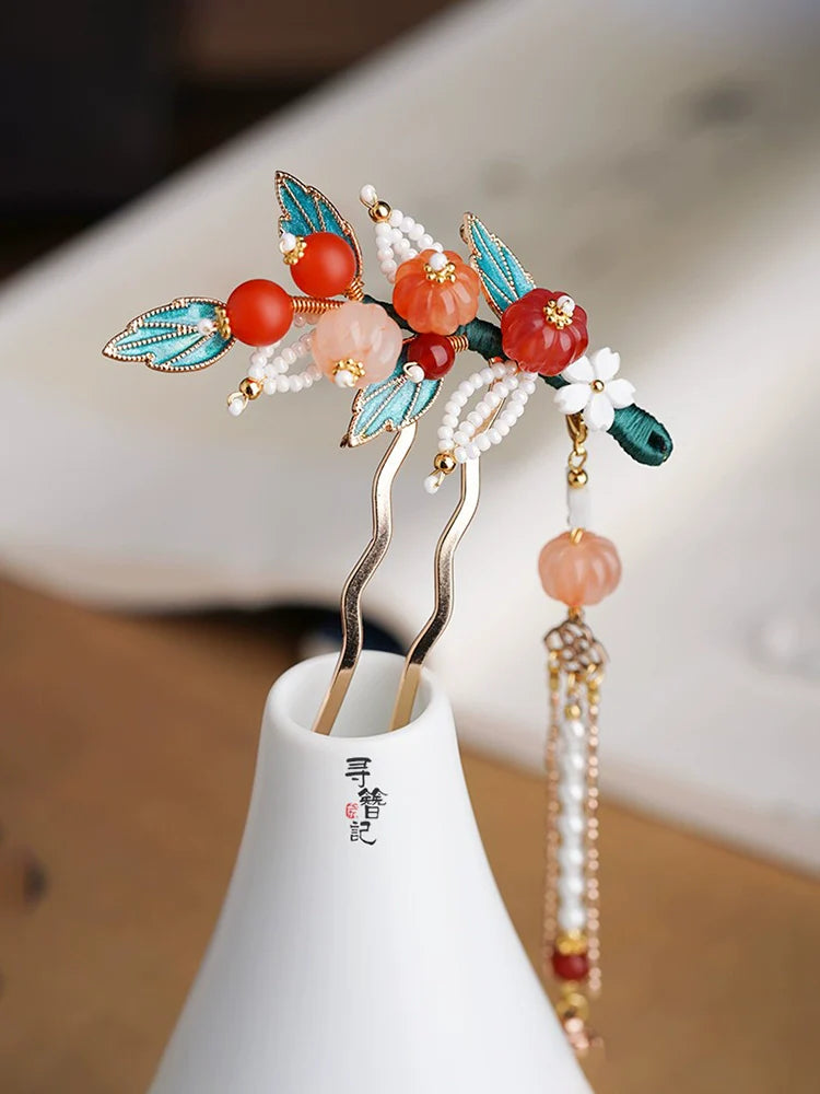 Long Tassels Hair Pins: Cute Ripe Pumpkin
