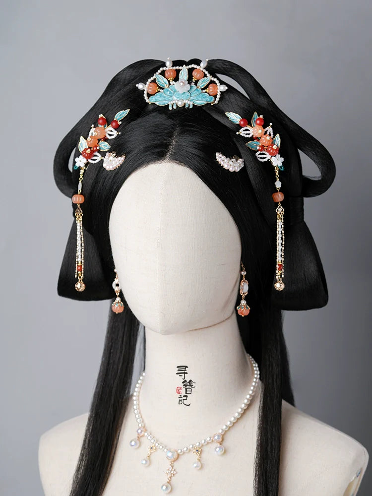 Hanfu hair accessories can vary widely in style, material, and design, but they all serve the purpose of enhancing the wearer's appearance and adding an extra touch of elegance to their hair. Some notable hair accessories commonly associated with Hanfu are hairpins (发簪, fāzān), hair combs (发篦, fābì), tassels (流苏, liúsū), hair ornaments (发髻, fājì), hairbands and headpieces (发饰, fāshì).