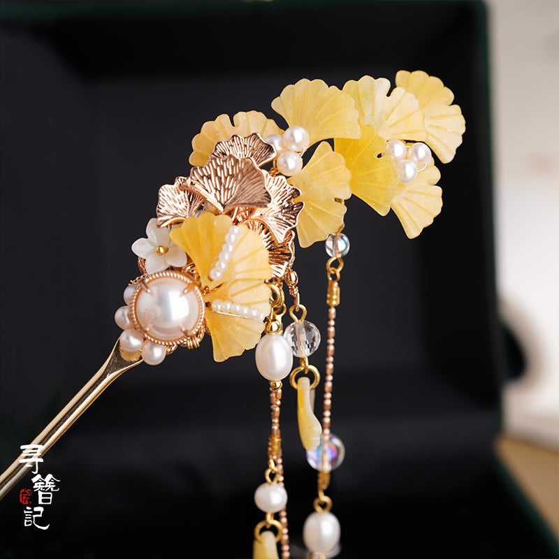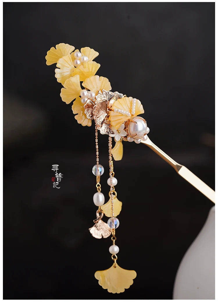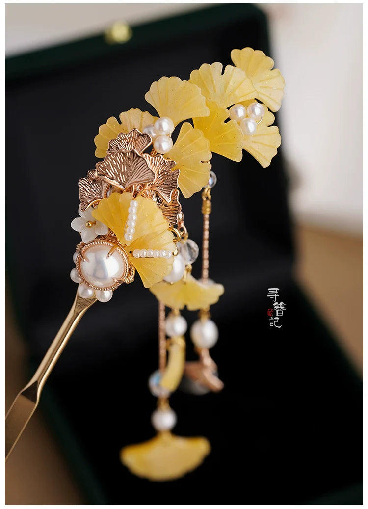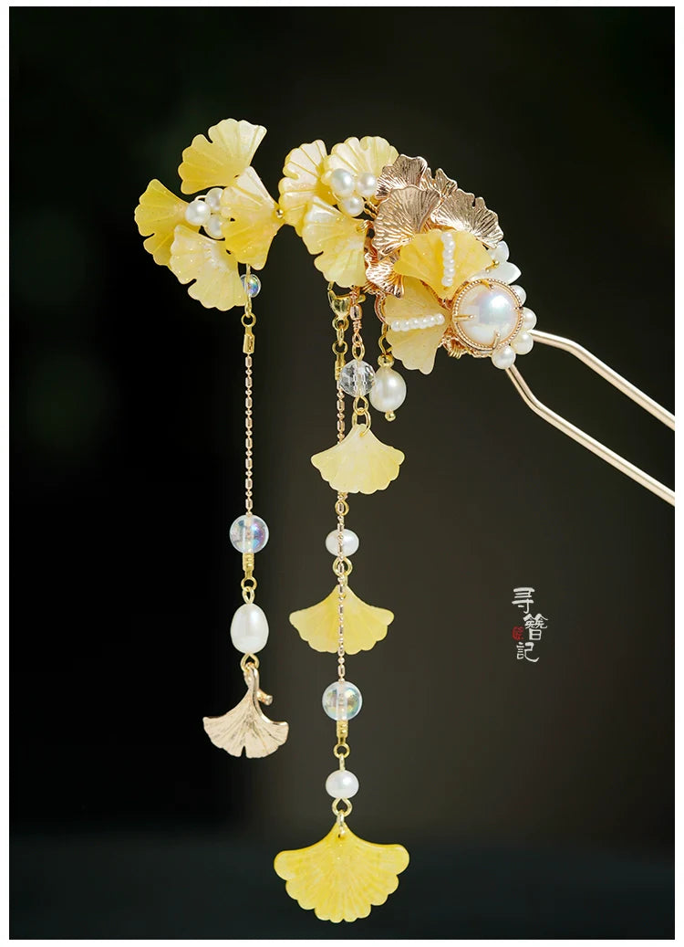 Long Tassels Hair Pins: Golden Gingko