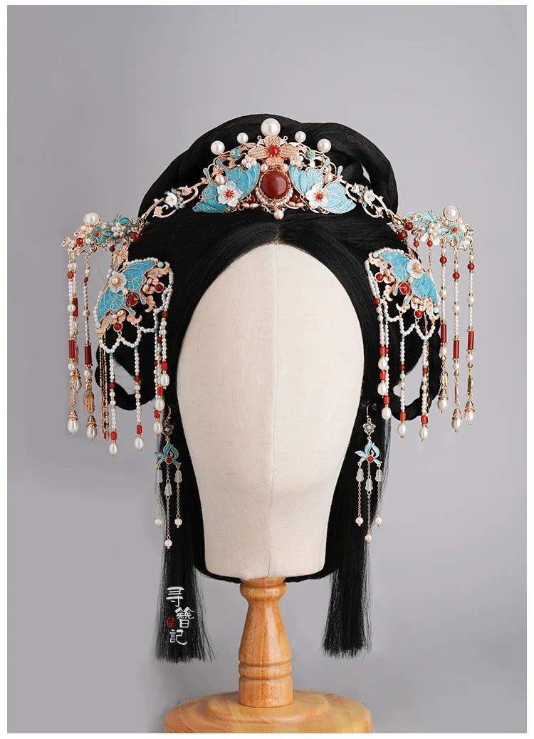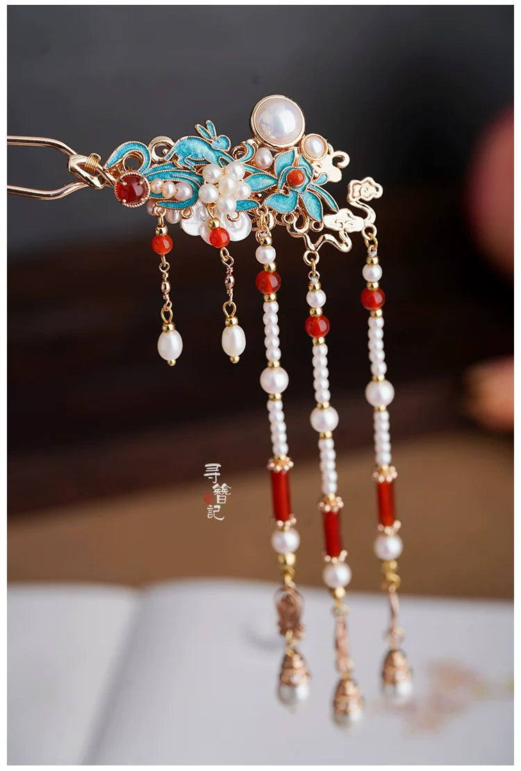 Hanfu hair accessories can vary widely in style, material, and design, but they all serve the purpose of enhancing the wearer's appearance and adding an extra touch of elegance to their hair. Some notable hair accessories commonly associated with Hanfu are hairpins (发簪, fāzān), hair combs (发篦, fābì), tassels (流苏, liúsū), hair ornaments (发髻, fājì), hairbands and headpieces (发饰, fāshì).