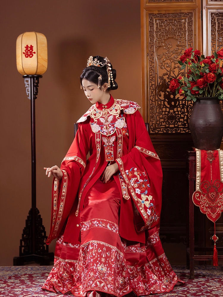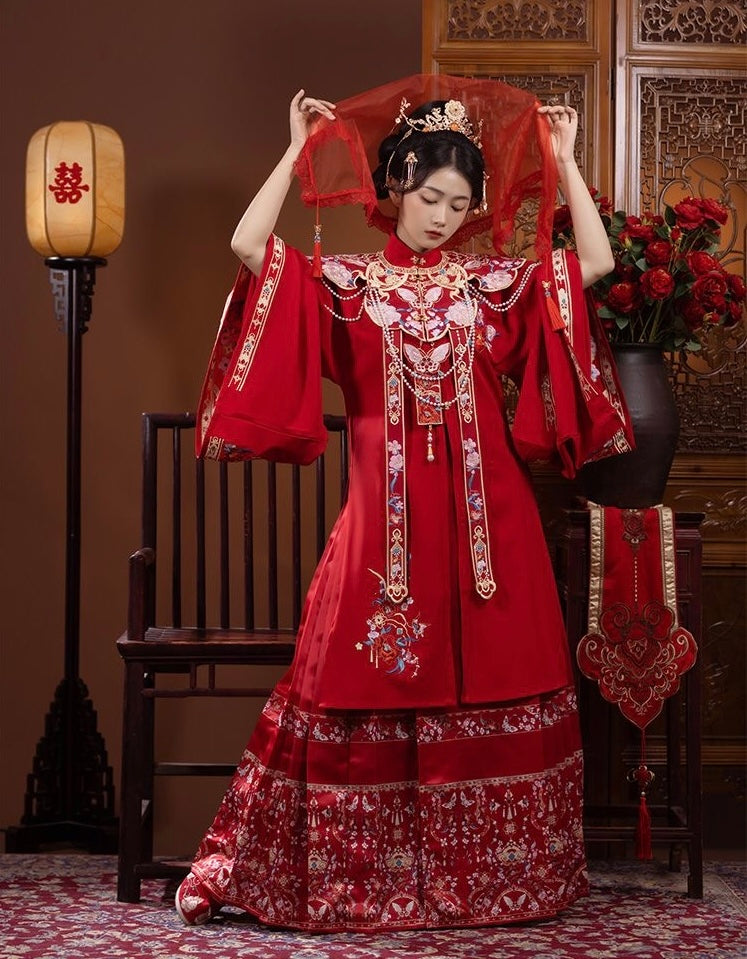Ming Dynasty Hanfu, Robe, Bridal, Mamianqun, Qixi