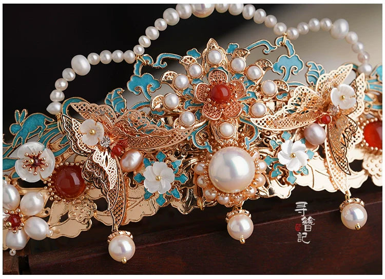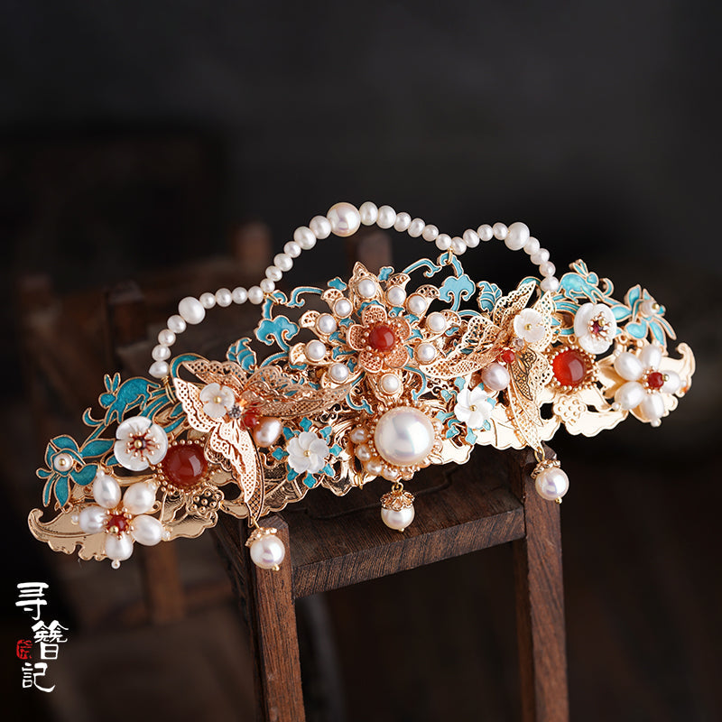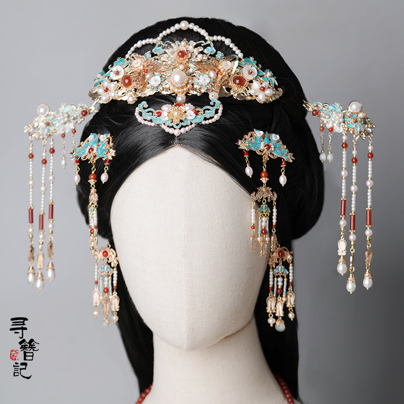 Hanfu hair accessories can vary widely in style, material, and design, but they all serve the purpose of enhancing the wearer's appearance and adding an extra touch of elegance to their hair. Some notable hair accessories commonly associated with Hanfu are hairpins (发簪, fāzān), hair combs (发篦, fābì), tassels (流苏, liúsū), hair ornaments (发髻, fājì), hairbands and headpieces (发饰, fāshì).