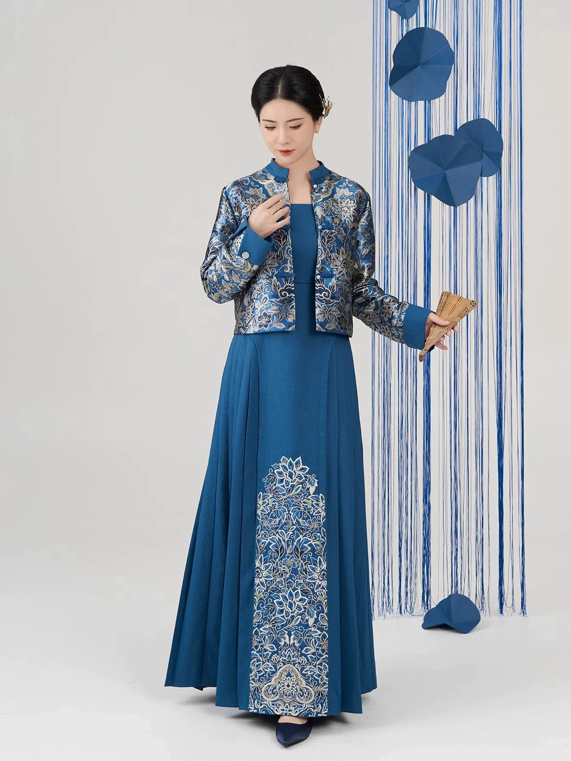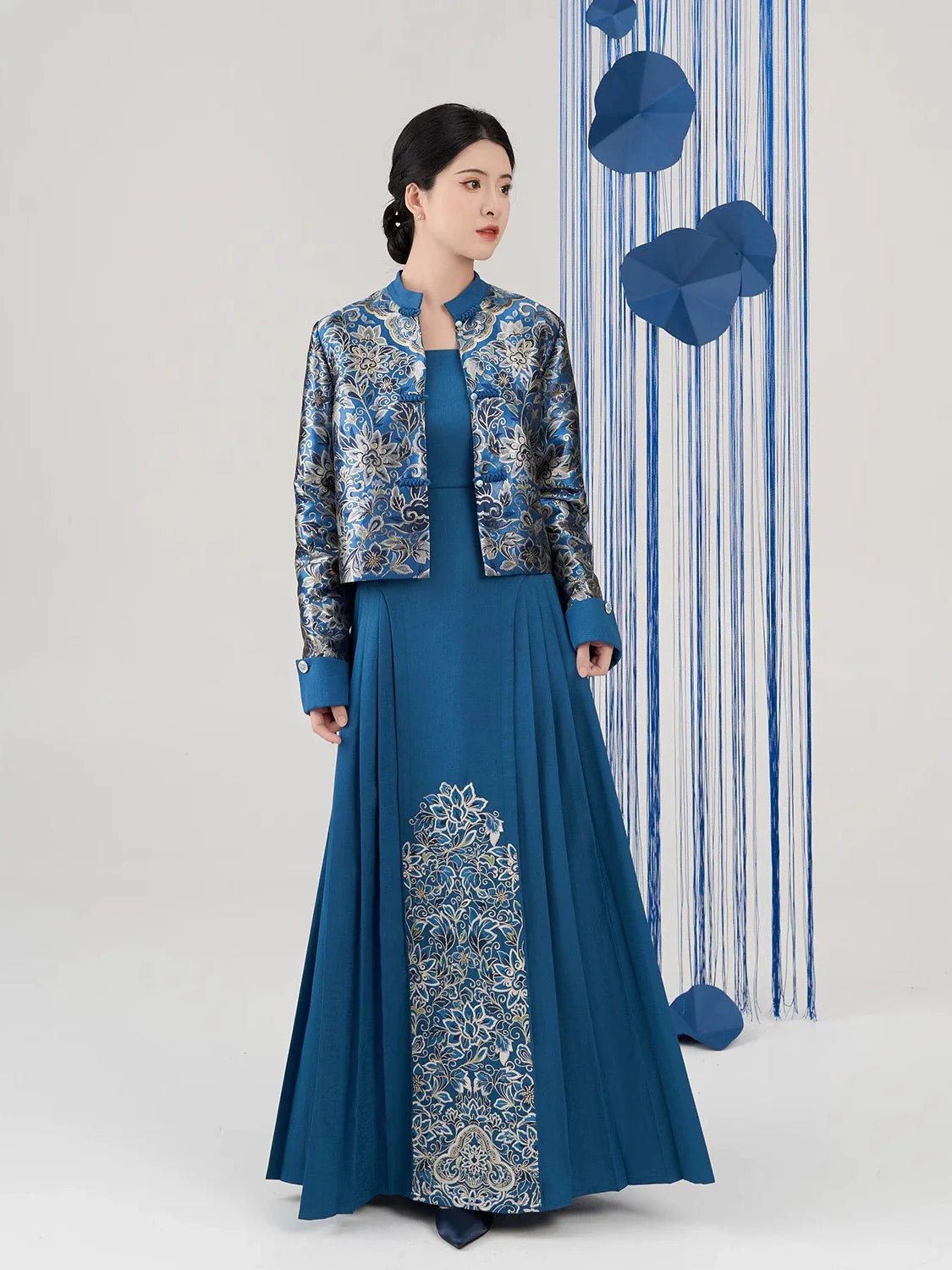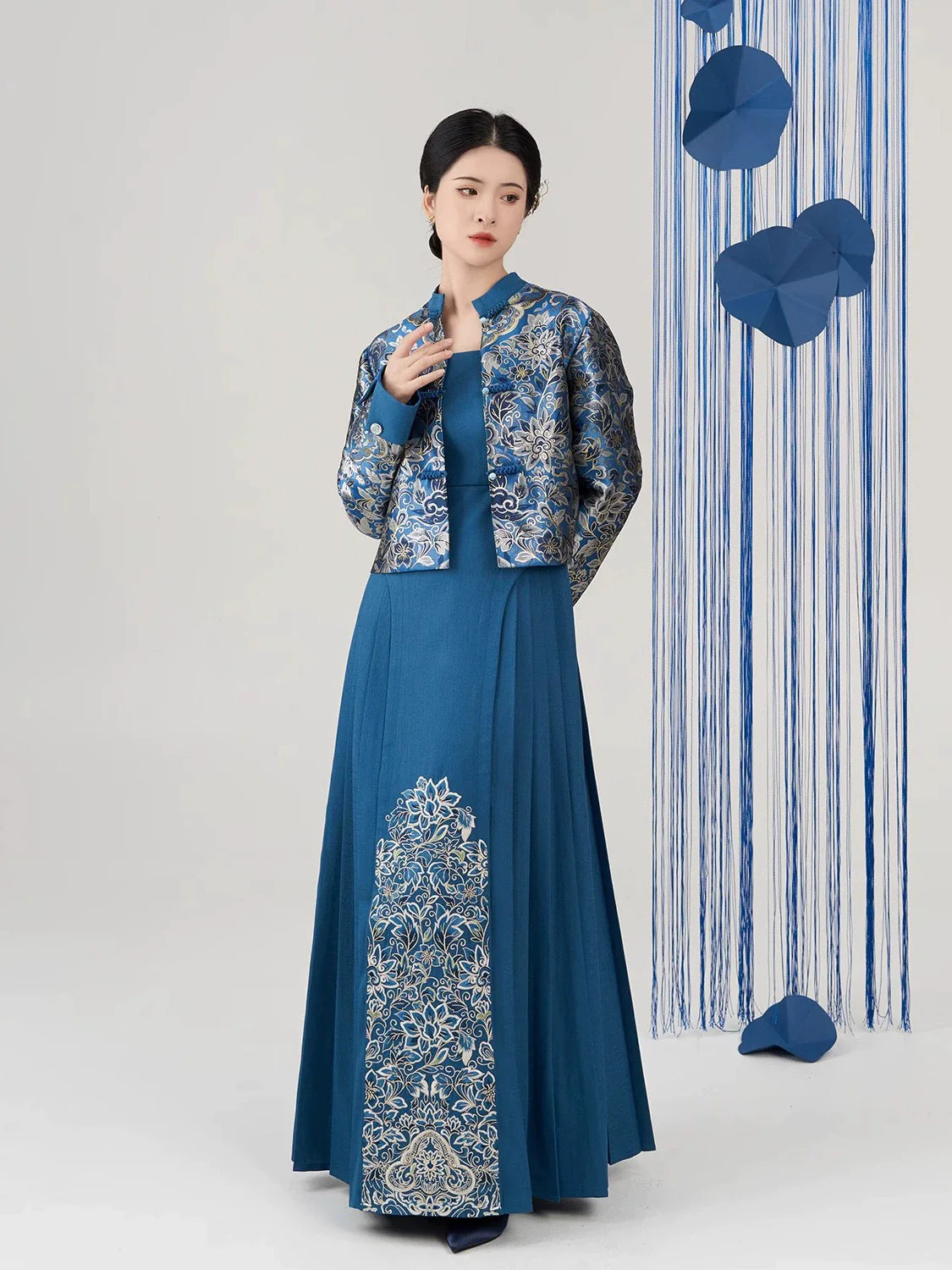 Ming Dynasty Modern Hanfu, Mamianqun, Glaze Blue Branch 釉蓝枝 (Preorder)