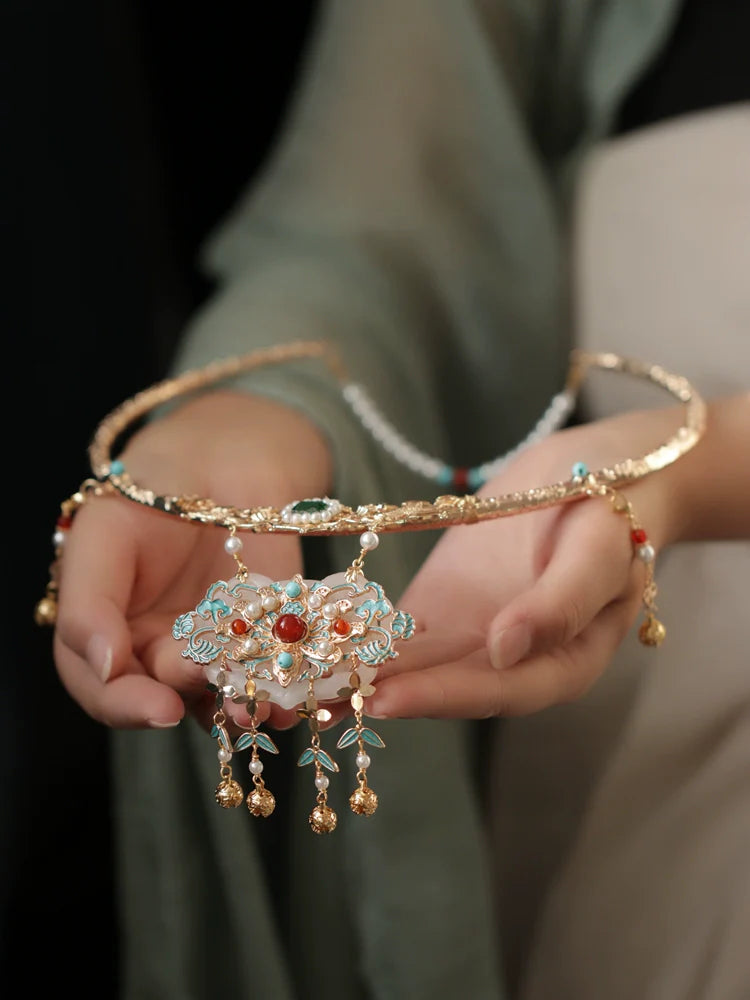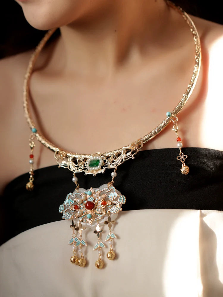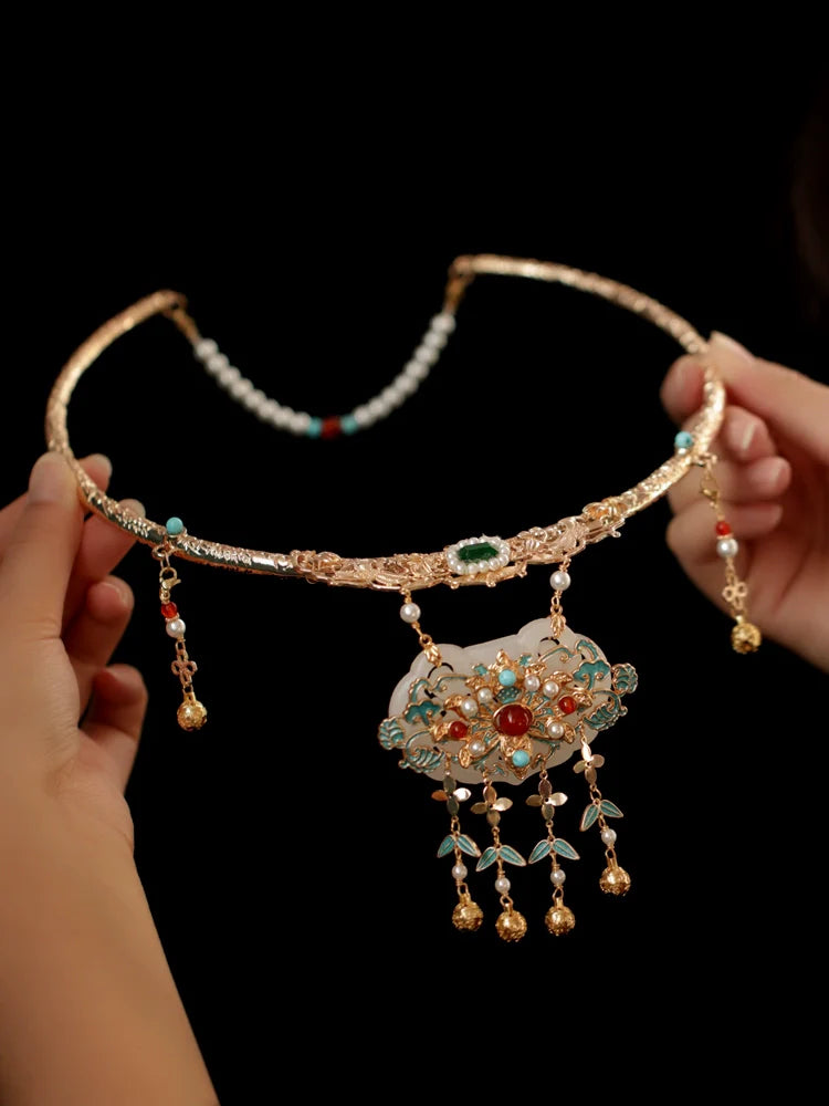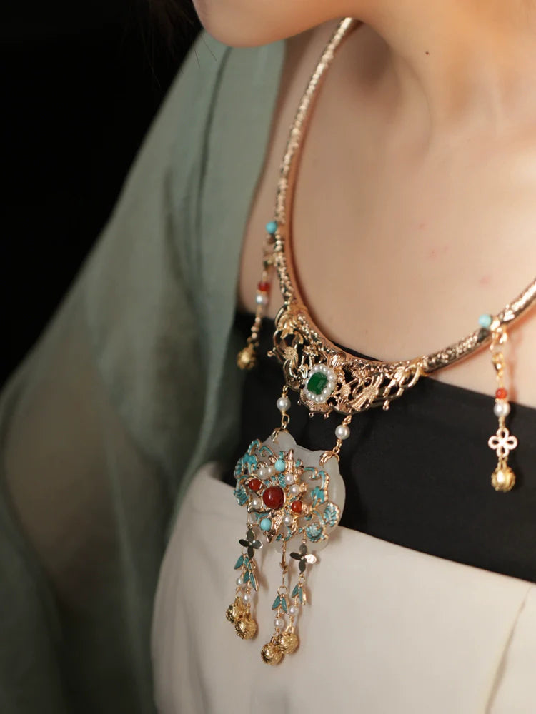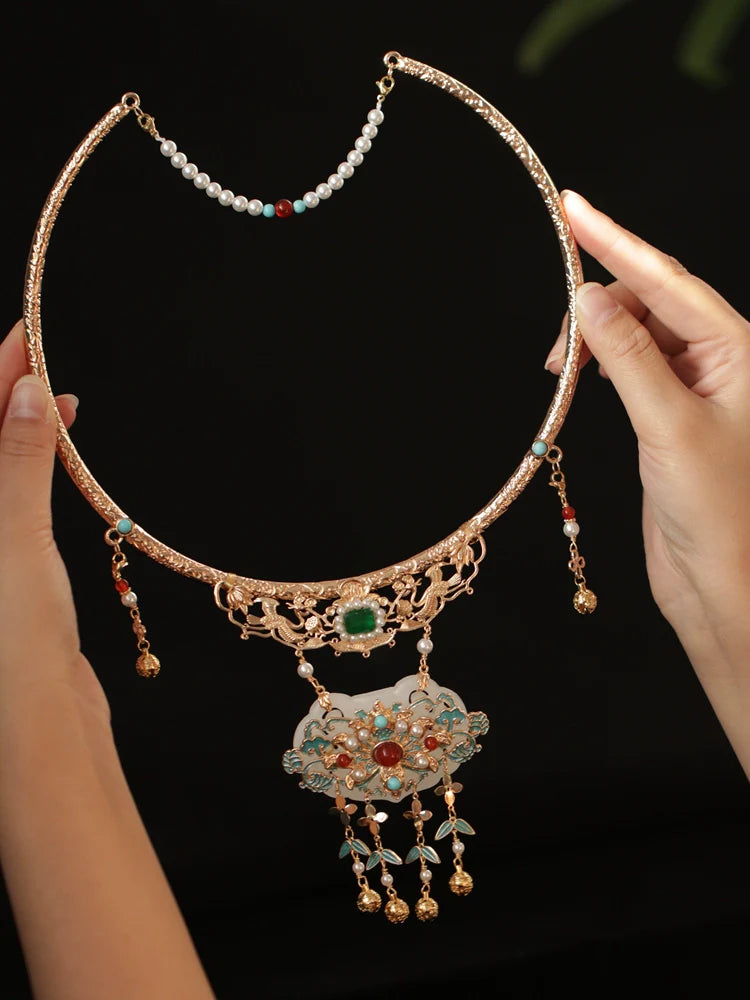 Traditional and modern Chinese-style accessories and costume jewelry, including necklaces, yingluo, and bracelets, perfect for pairing with Hanfu, Cheongsam, and Qipao.