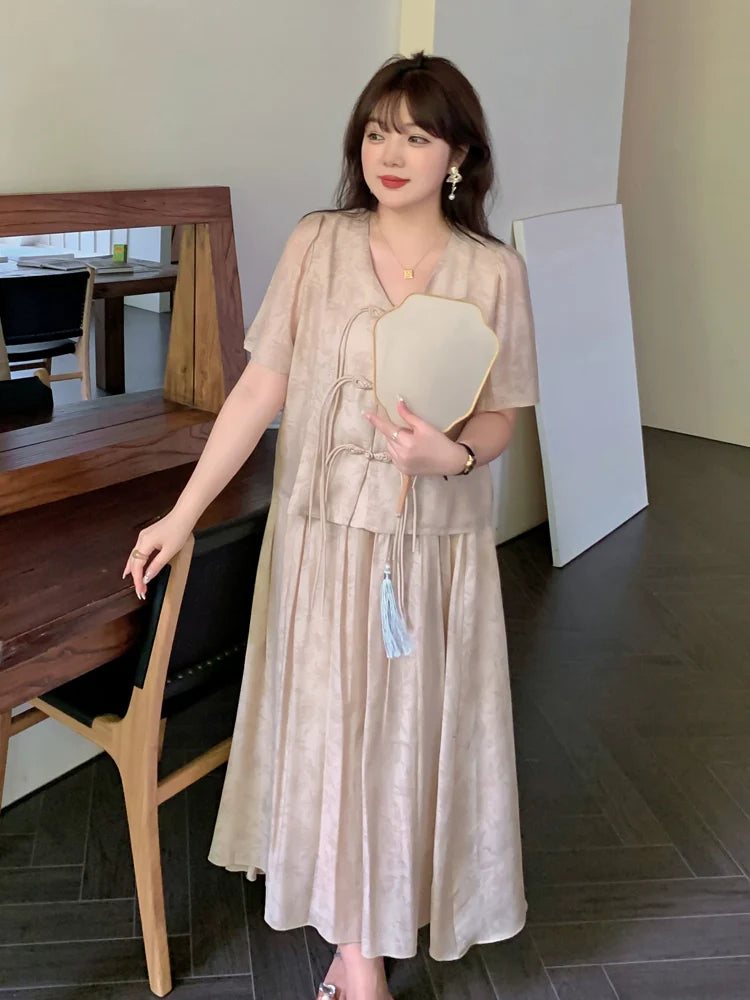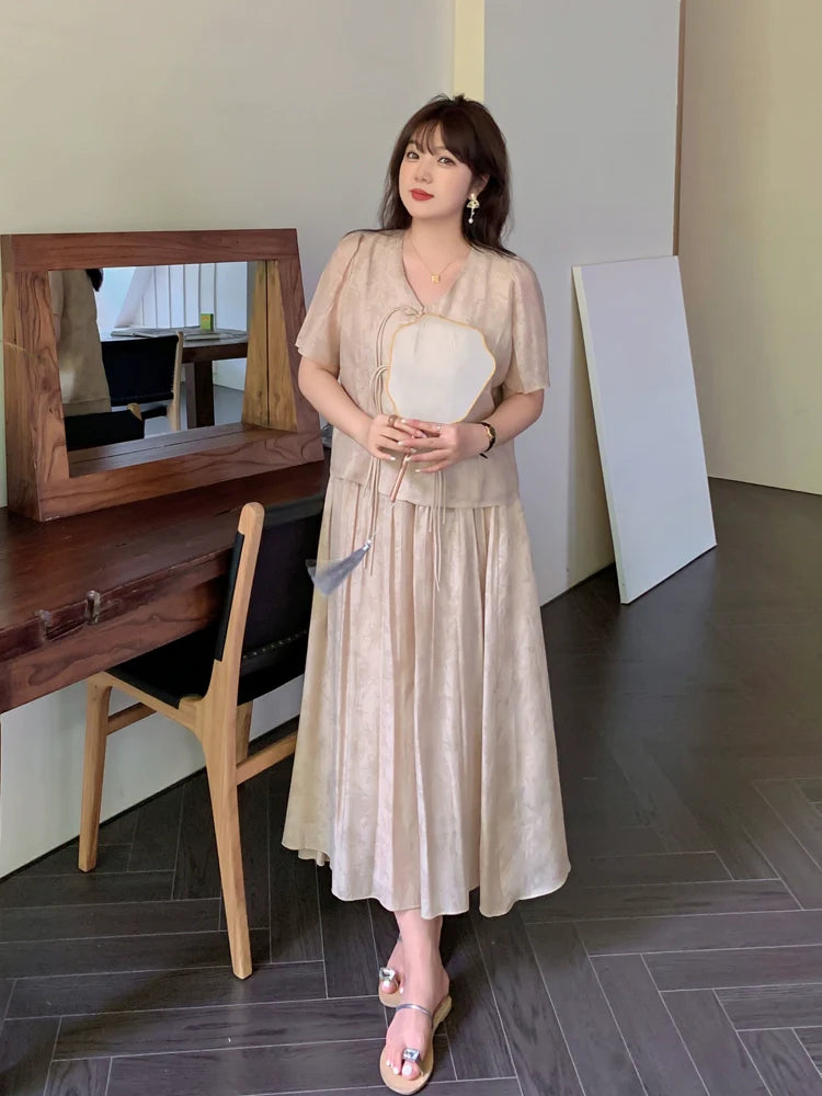 Designed with our plus-size goddesses in mind, our collection showcases Cheongsams, modern Chinese-style dresses, and Hanfu. Available in sizes XL-5XL.