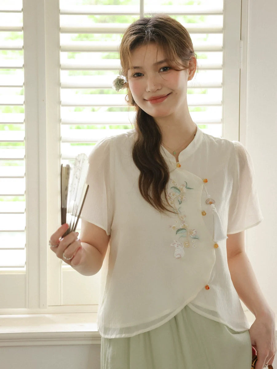 Pear Falling 梨落轻舟 - New Chinese Style Cheongsam Matching Set