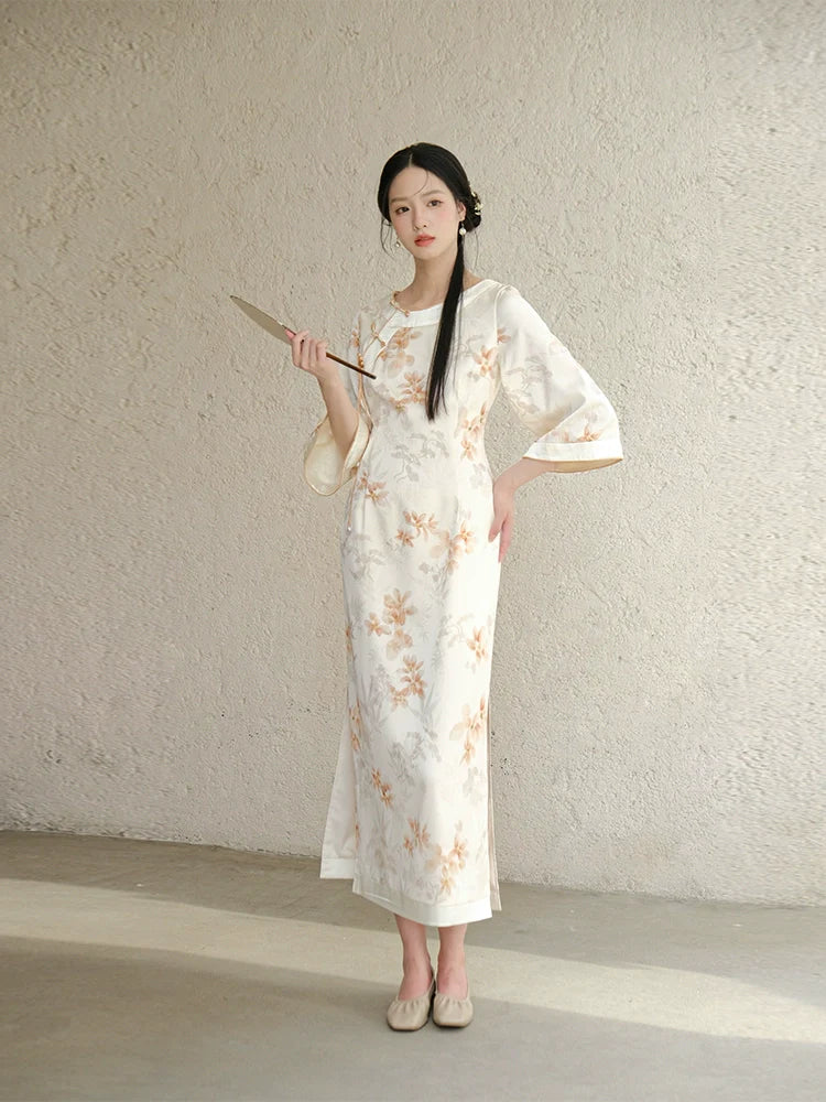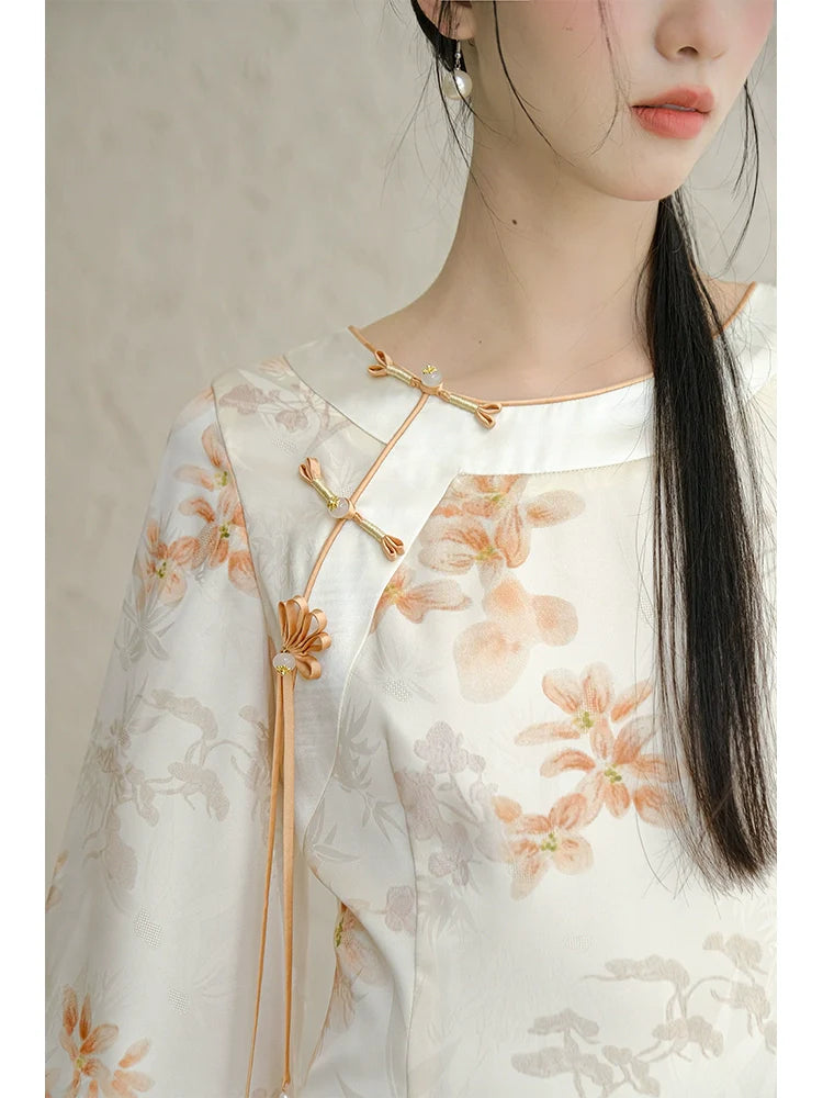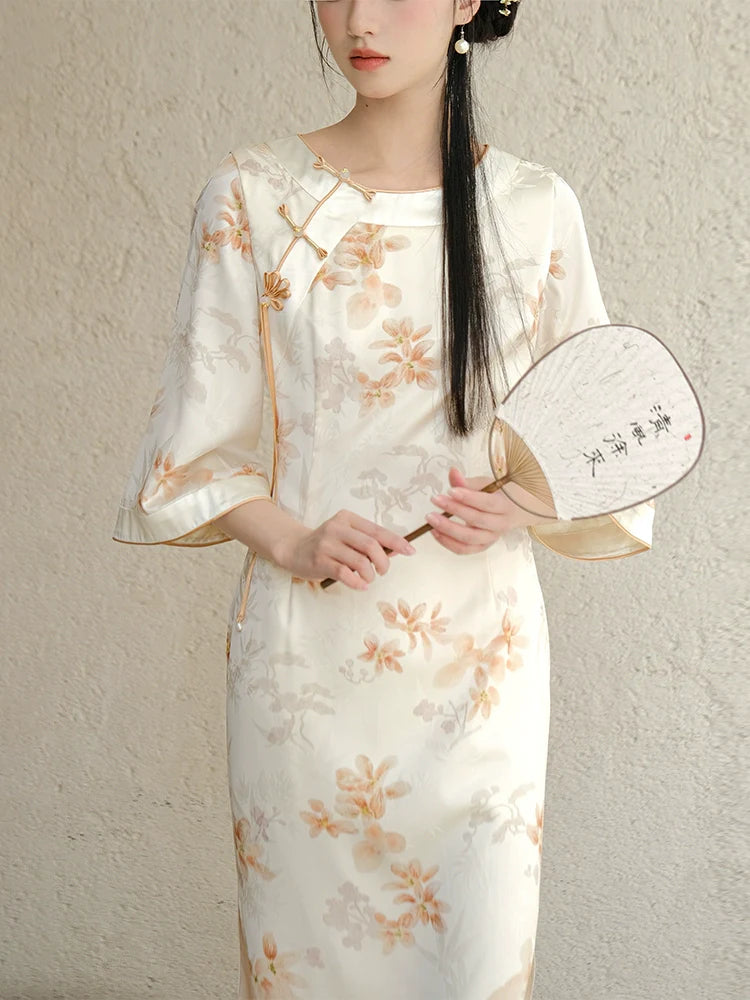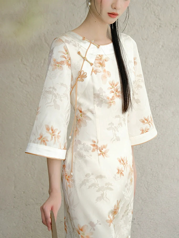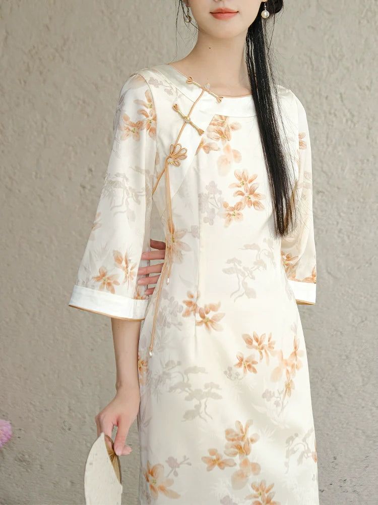 Orange Blossoms - New Chinese Style Cheongsam Dress (Preorder)