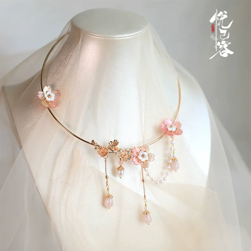 Traditional and modern Chinese-style accessories and costume jewelry, including necklaces, yingluo, and bracelets, perfect for pairing with Hanfu, Cheongsam, and Qipao.