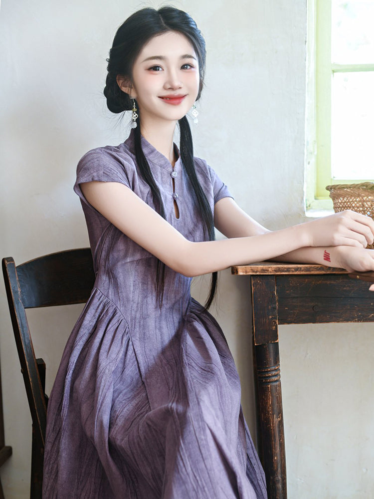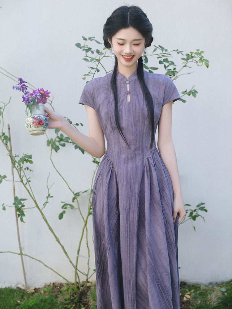 Pastel Winds 紫风 - New Chinese Style Cheongsam Dress