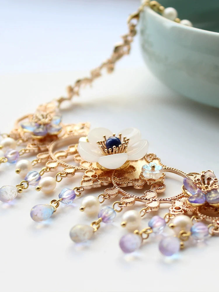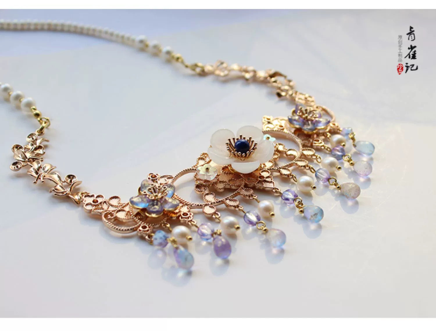 Traditional and modern Chinese-style accessories and costume jewelry, including necklaces, yingluo, and bracelets, perfect for pairing with Hanfu, Cheongsam, and Qipao.