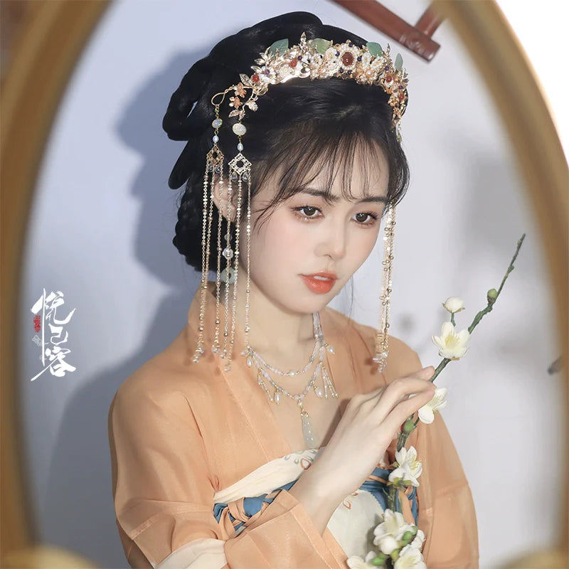 Yingluo 璎珞, also known as Huaman 华鬘, is a Han Chinese Traditional Accessory. Made of a variety of small flowers ornaments, it was introduced to China with Buddhism in the Han Dynasty. In modern context, one can relate it to a necklace.