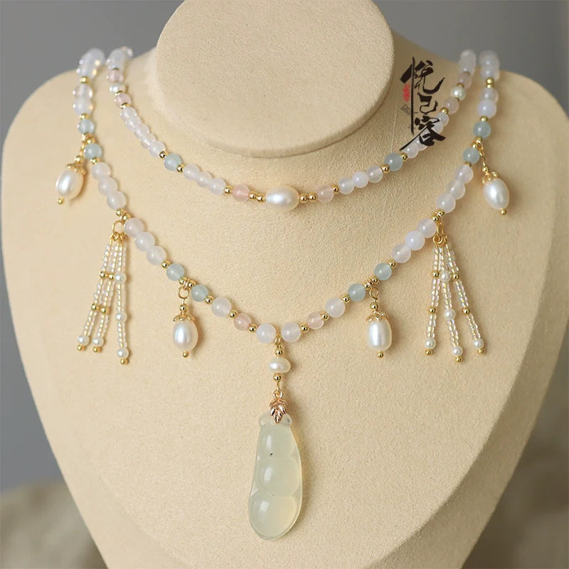 Traditional and modern Chinese-style accessories and costume jewelry, including necklaces, yingluo, and bracelets, perfect for pairing with Hanfu, Cheongsam, and Qipao.