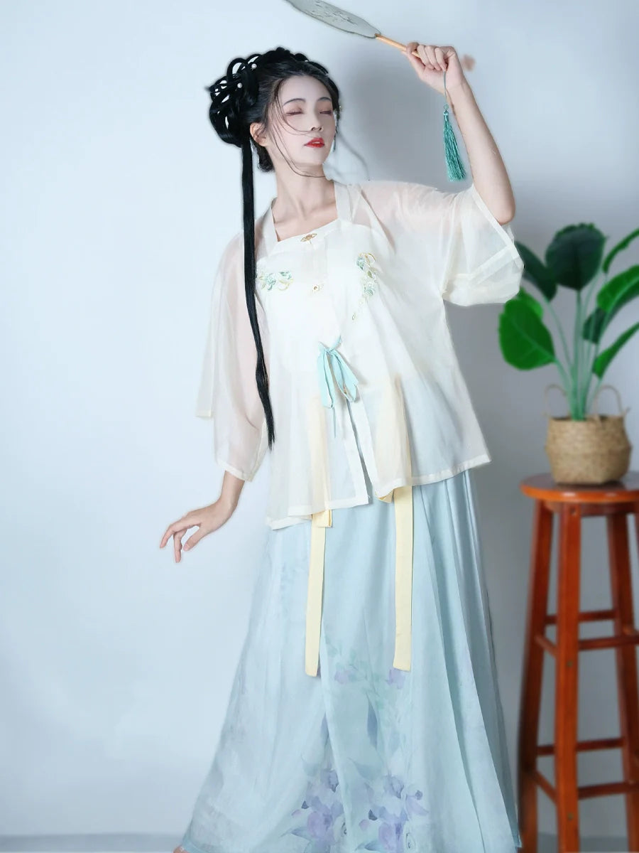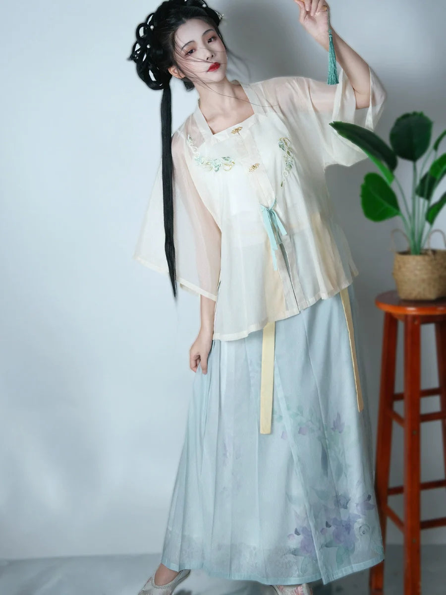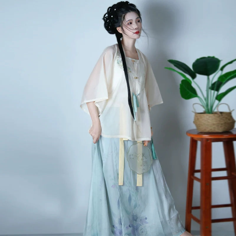 Qianran - New Chinese Style Ming Dynasty Hanfu Matching Set