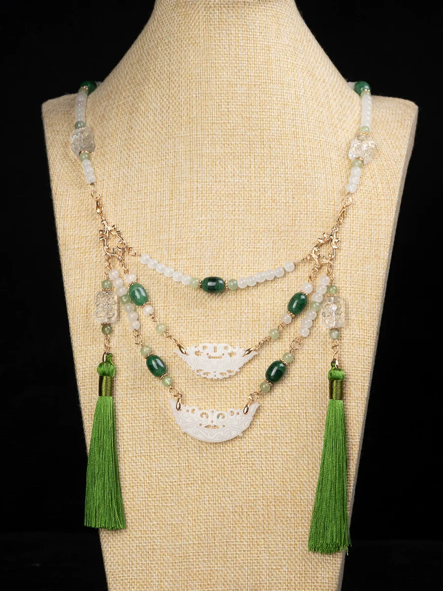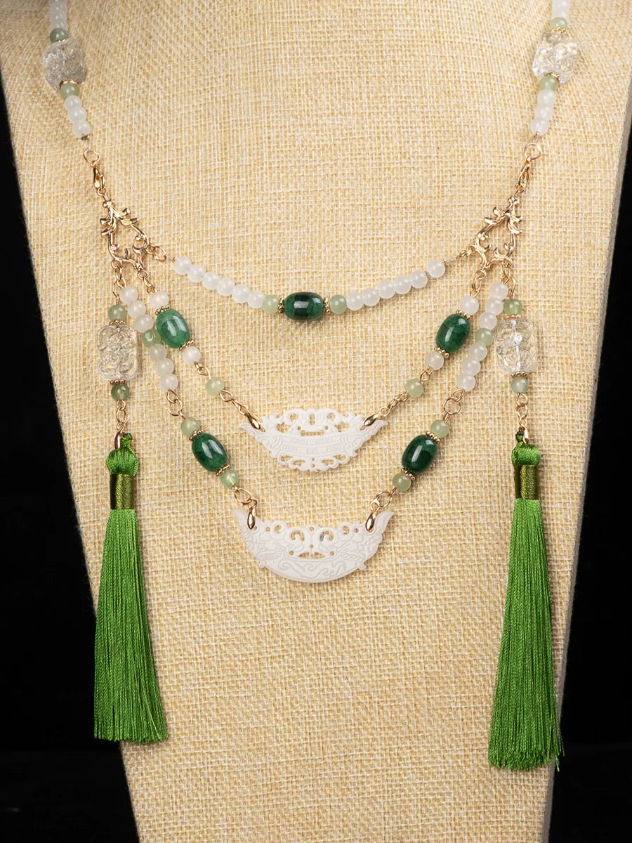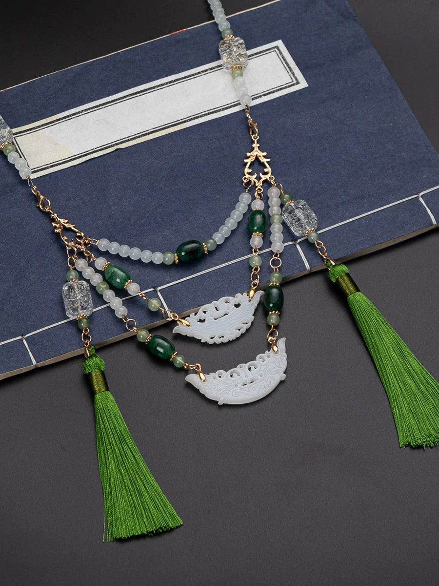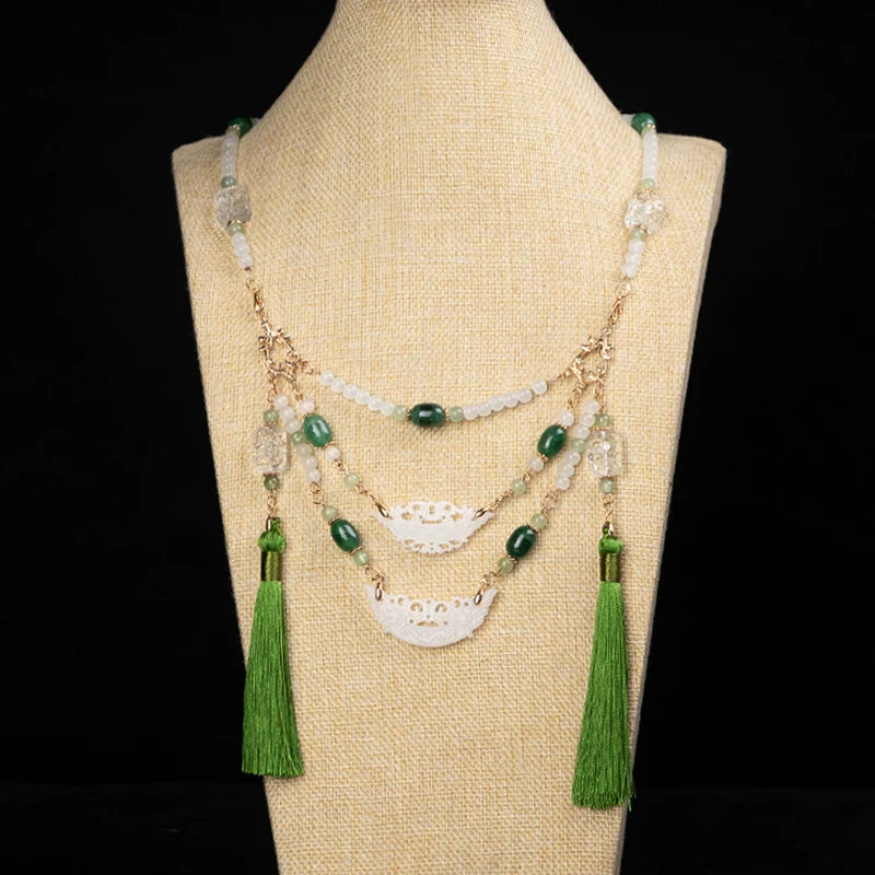 Traditional and modern Chinese-style accessories and costume jewelry, including necklaces, yingluo, and bracelets, perfect for pairing with Hanfu, Cheongsam, and Qipao.