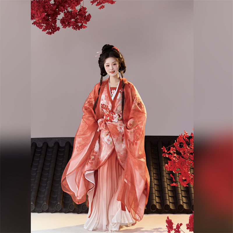 Red Scarlet 红绯 - Warring States and Han Dynasty Straight Hem Robe