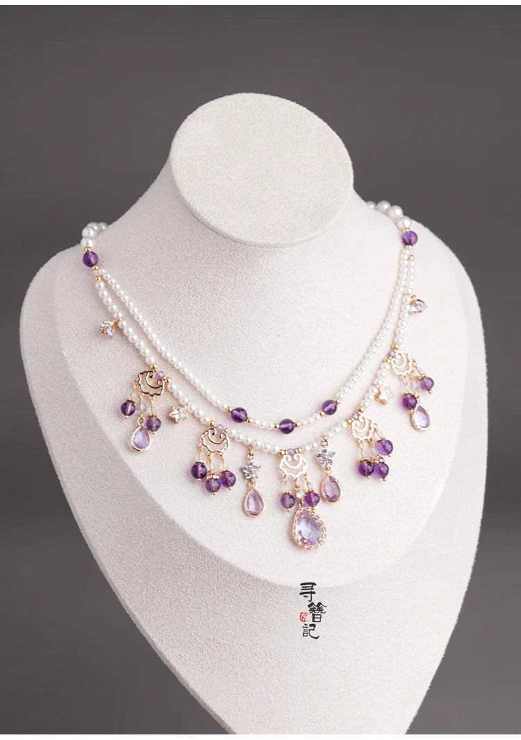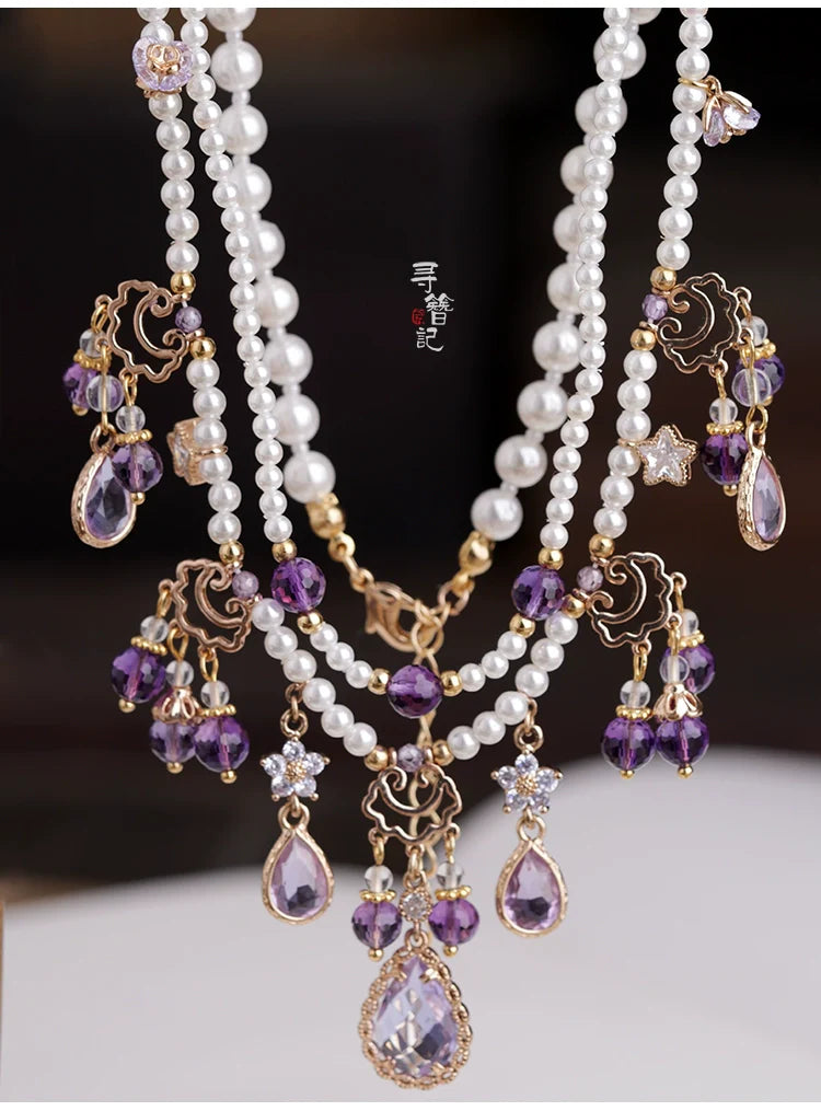 Traditional and modern Chinese-style accessories and costume jewelry, including necklaces, yingluo, and bracelets, perfect for pairing with Hanfu, Cheongsam, and Qipao.