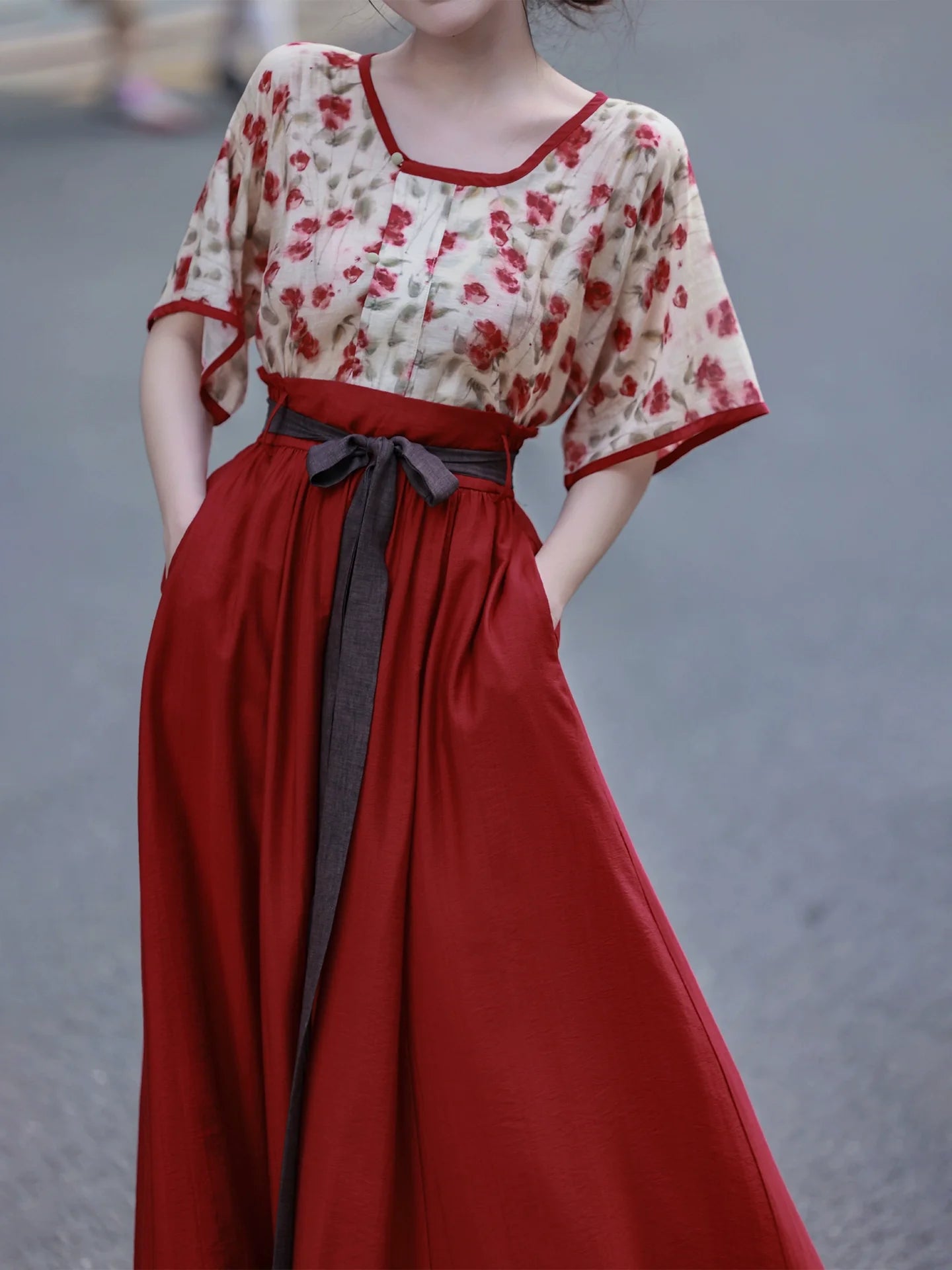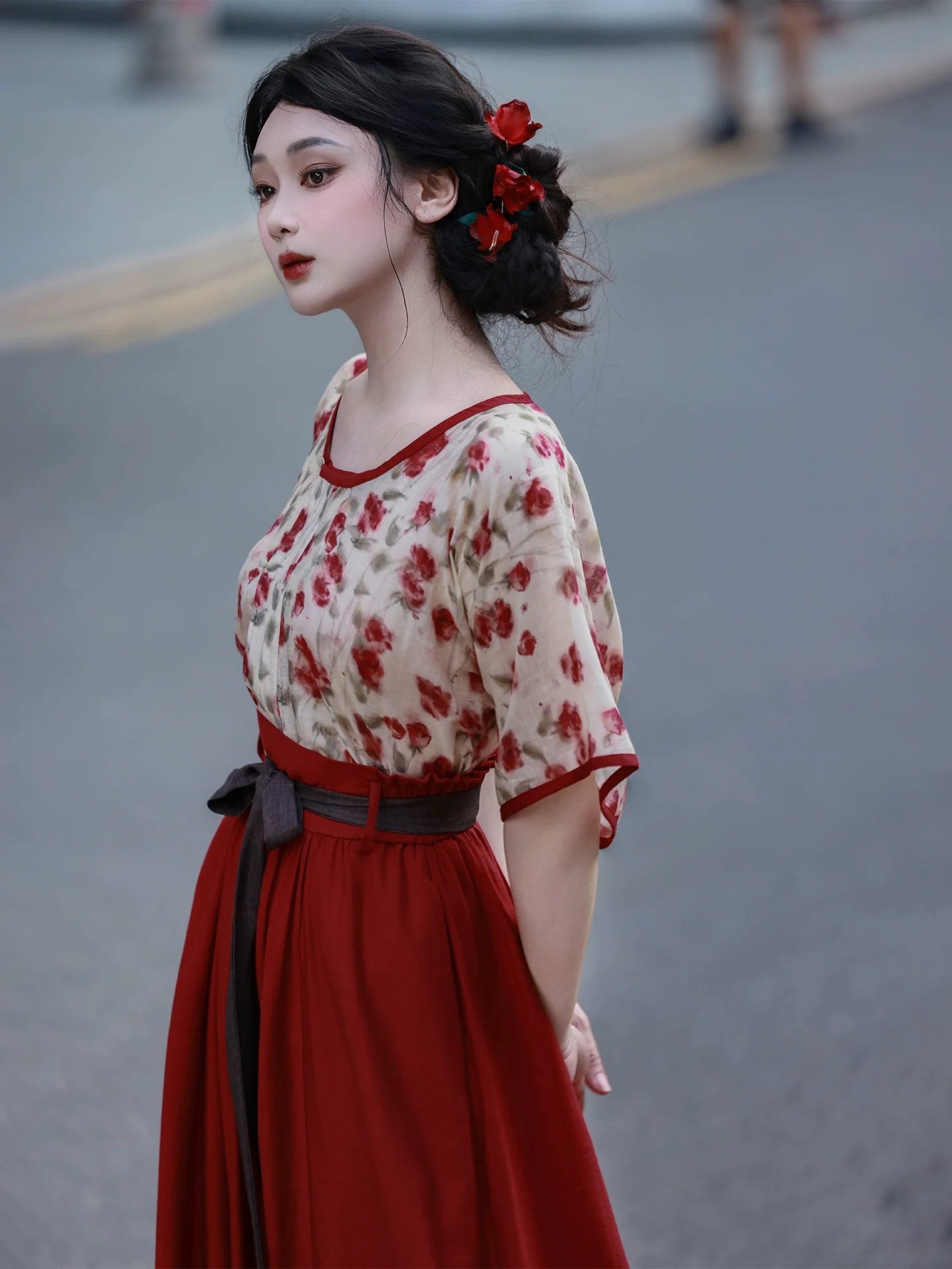 Rose Iced Tea 玫瑰冰茶 - Modern Tang Dynasty Hanfu Outfit (Preorder)