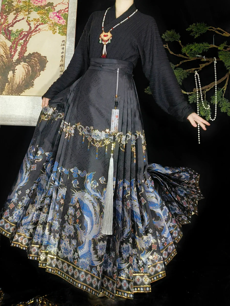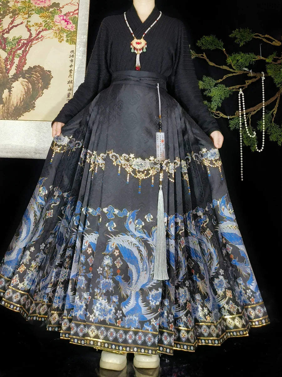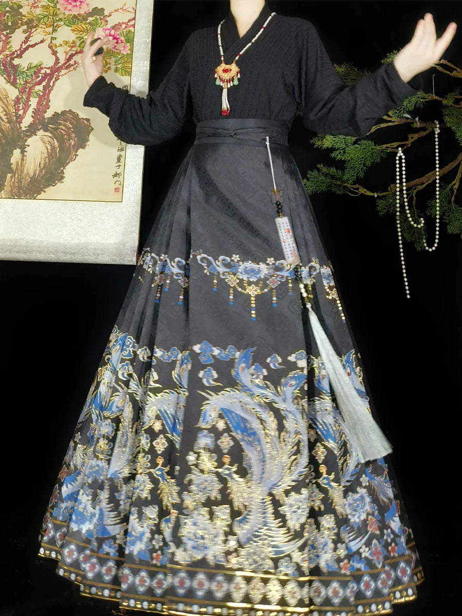 Sapphire Phoenix - New Chinese Style Ming Dynasty Hanfu Matching Set