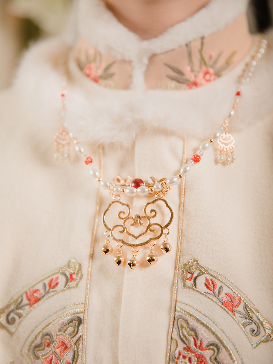 To maintain its shine, store the necklace, or yingluo in a sealed bag when not in use. Do not wear it in the shower or expose it to water.