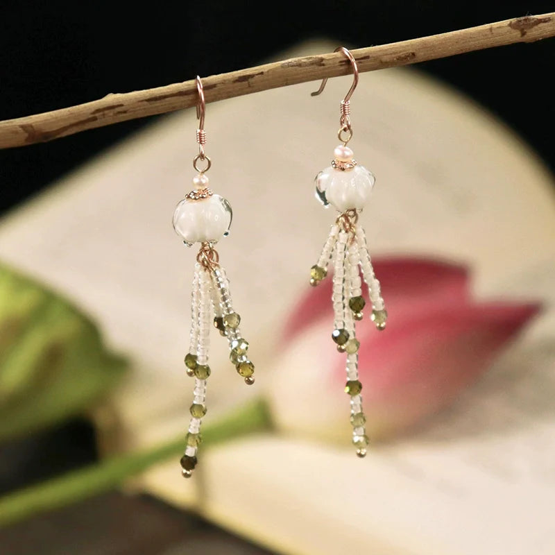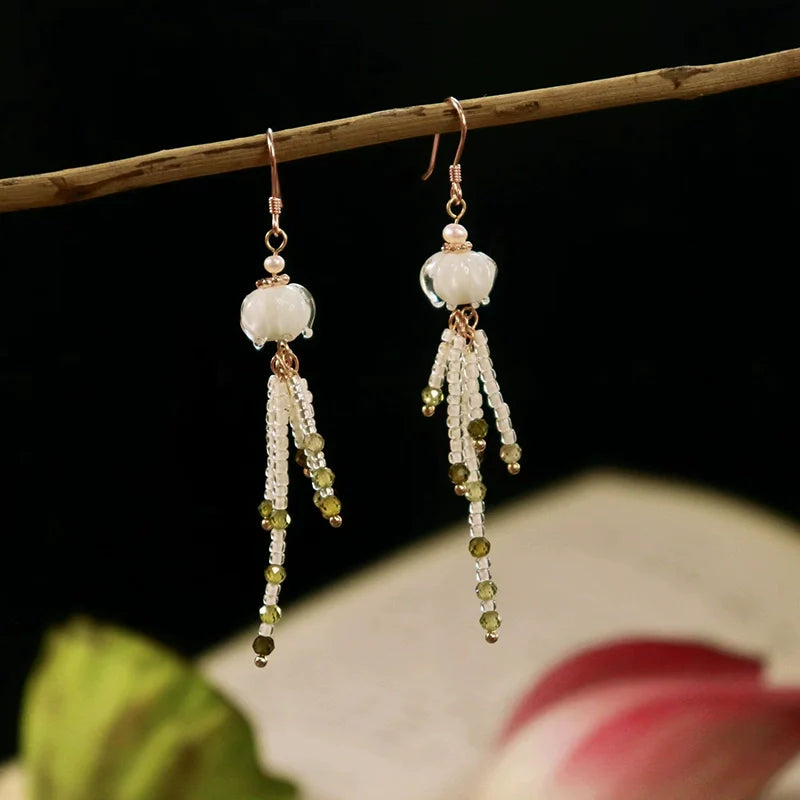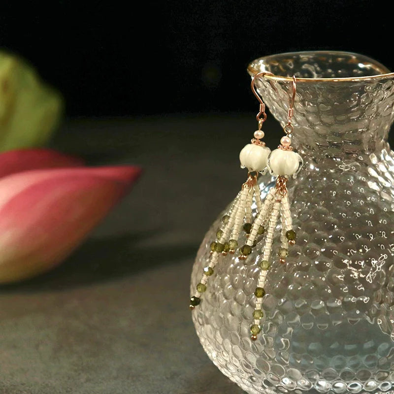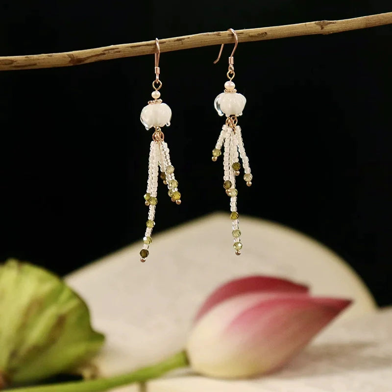 Silver Lilies Chinese Style Earrings