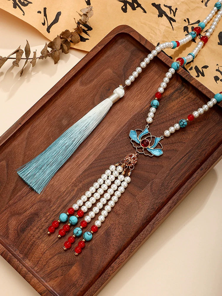 - Materials: Our necklaces are mainly made with soft color-preserving copper, freshwater pearls, red agate, flower charms, leaf charms, and tassels.