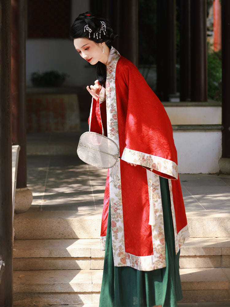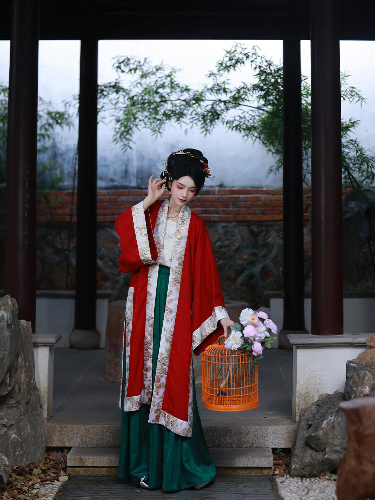 During the Song dynasty, poets and literati favored simple yet elegant attire, reflecting their intellectual pursuits and commitment to scholarly values. Men typically wore shenyi, loose robes with wide sleeves, or round-collared yuanlingpao, both symbolizing grace and practicality. Women scholars often donned beizi (long jackets) with skirts or trousers, embracing modest, soft-toned styles. Song fashion emphasized simplicity and refinement, mirroring the era’s focus on poetry, art, and intellectual achievement, setting a lasting trend for future generations.