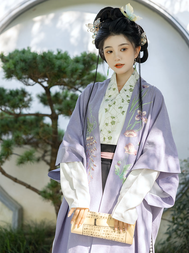 During the Song dynasty, poets and literati favored simple yet elegant attire, reflecting their intellectual pursuits and commitment to scholarly values. Men typically wore shenyi, loose robes with wide sleeves, or round-collared yuanlingpao, both symbolizing grace and practicality. Women scholars often donned beizi (long jackets) with skirts or trousers, embracing modest, soft-toned styles. Song fashion emphasized simplicity and refinement, mirroring the era’s focus on poetry, art, and intellectual achievement, setting a lasting trend for future generations.